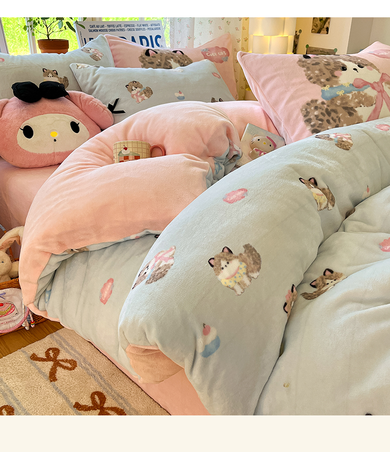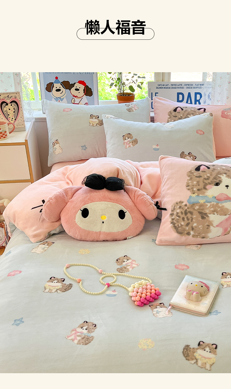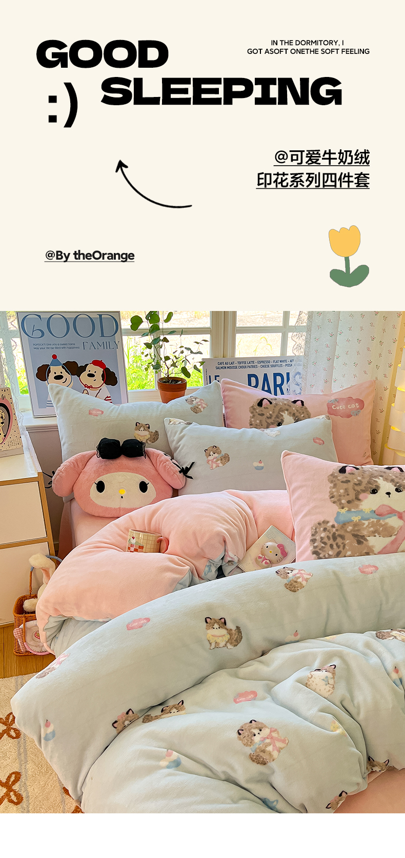 (总)如一 2025新款高克重大版数码印花牛奶绒四件套,毛毛狗,猫咪酱,俏皮狗,色彩猫,小熊仔,熊猫咖,游乐园,粉伙伴,拉兔咖,萌宠黄,萌宠绿,萌派对,围巾狗,线条狗,小粉喵,小花喵,小伙伴