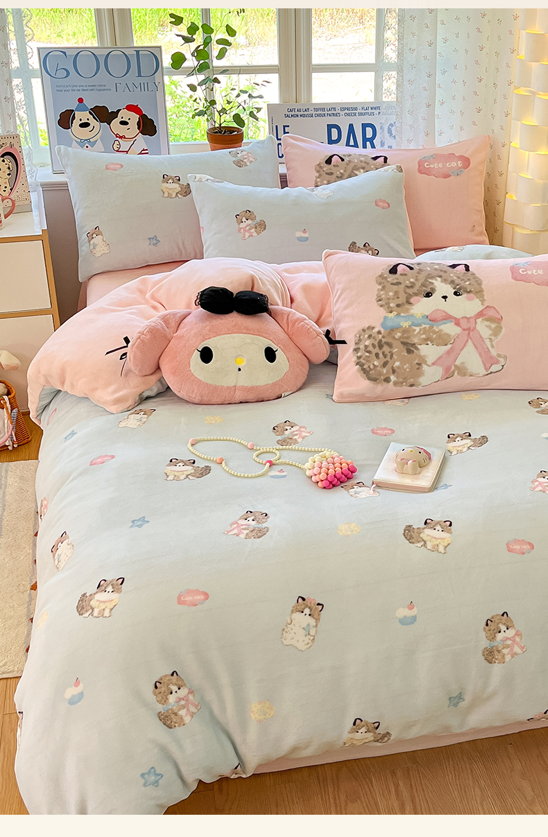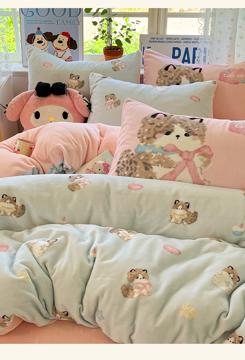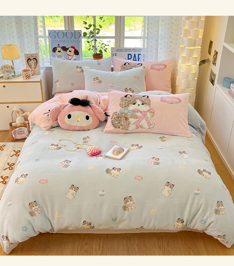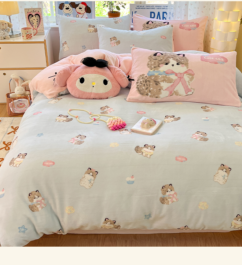 如一 2025新款高克重卡通印花牛奶绒四件套第二批 娇气猫