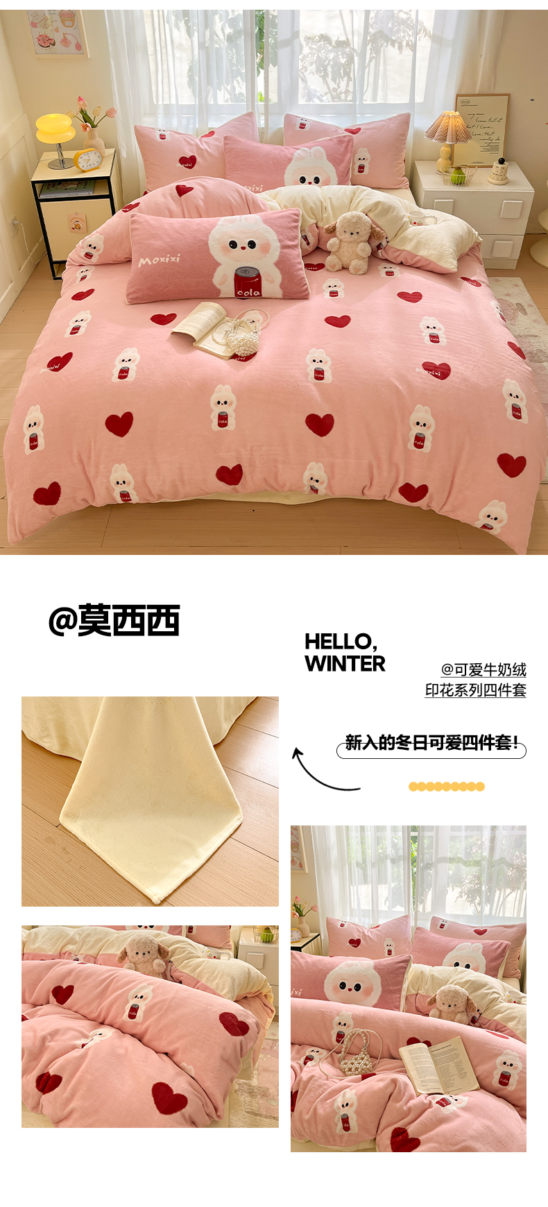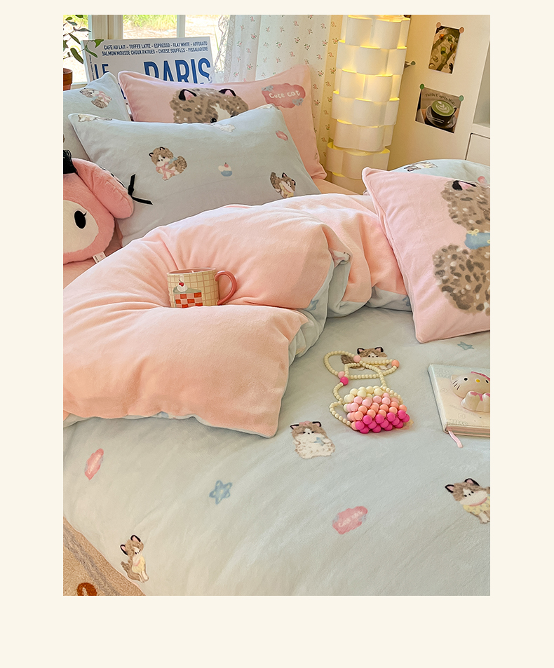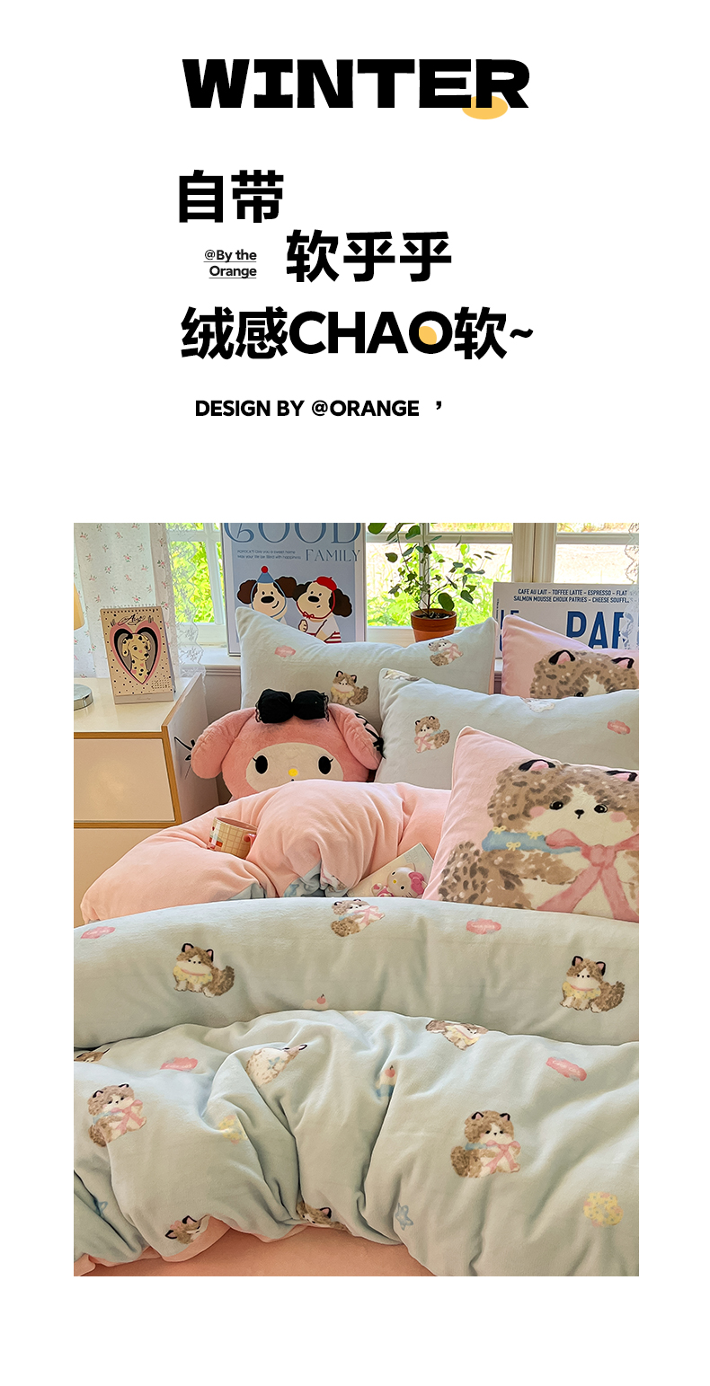 如一 2025新款高克重卡通印花牛奶绒四件套第二批 娇气猫