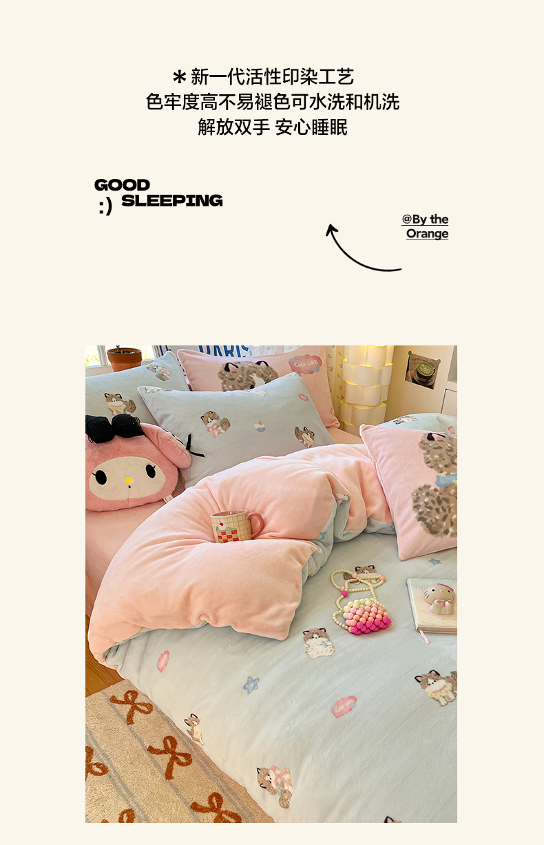 商品名称:如一 2025新款高克重卡通印花牛奶绒四件套第二批 娇气猫
