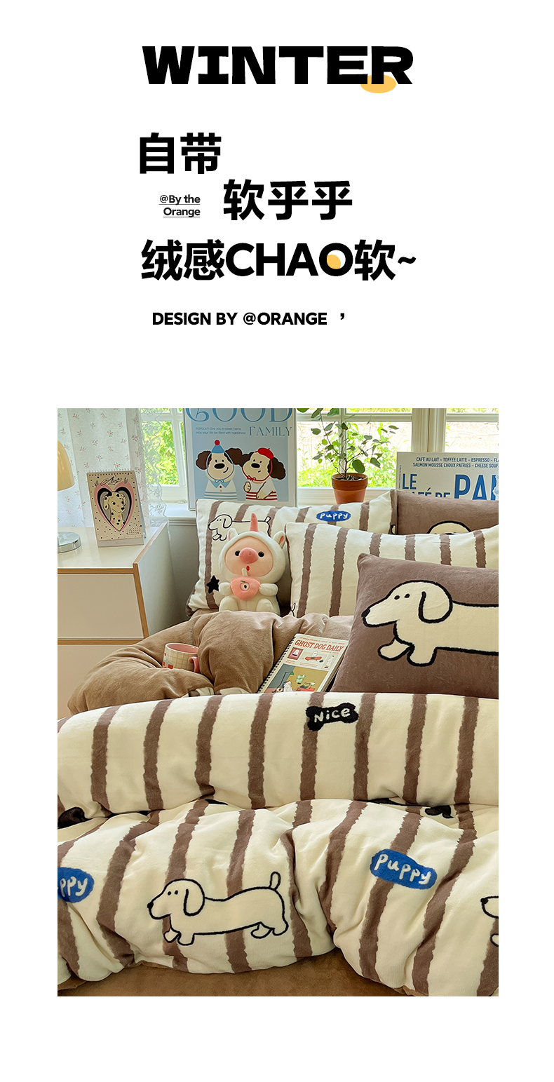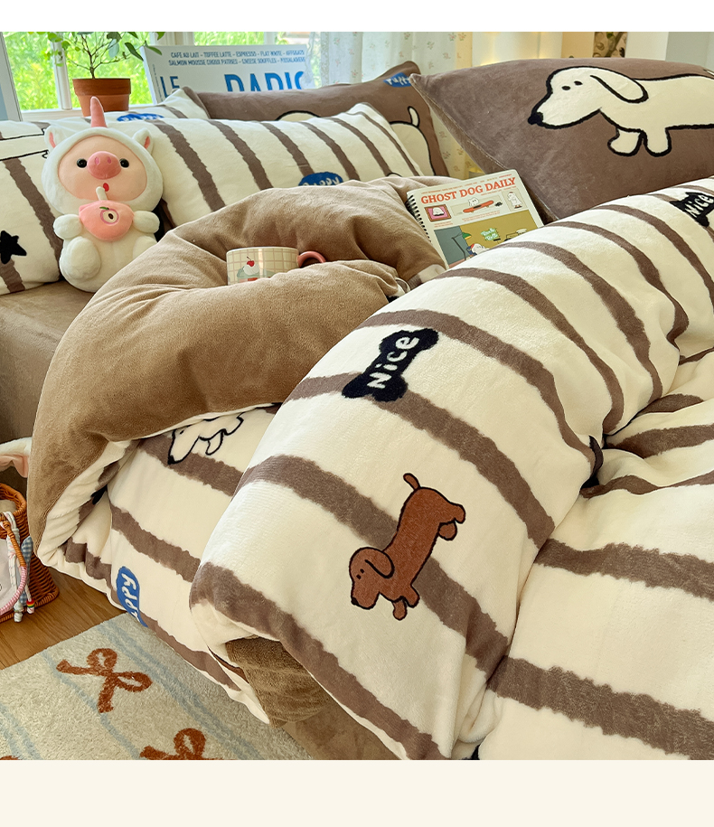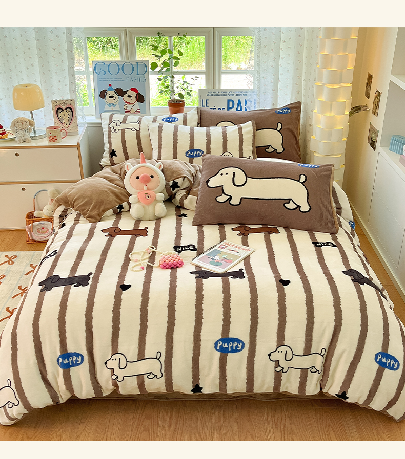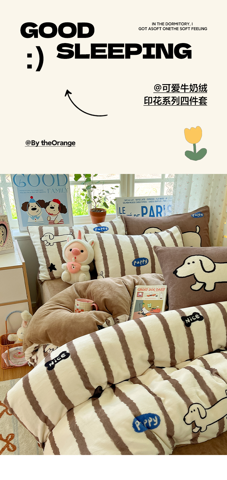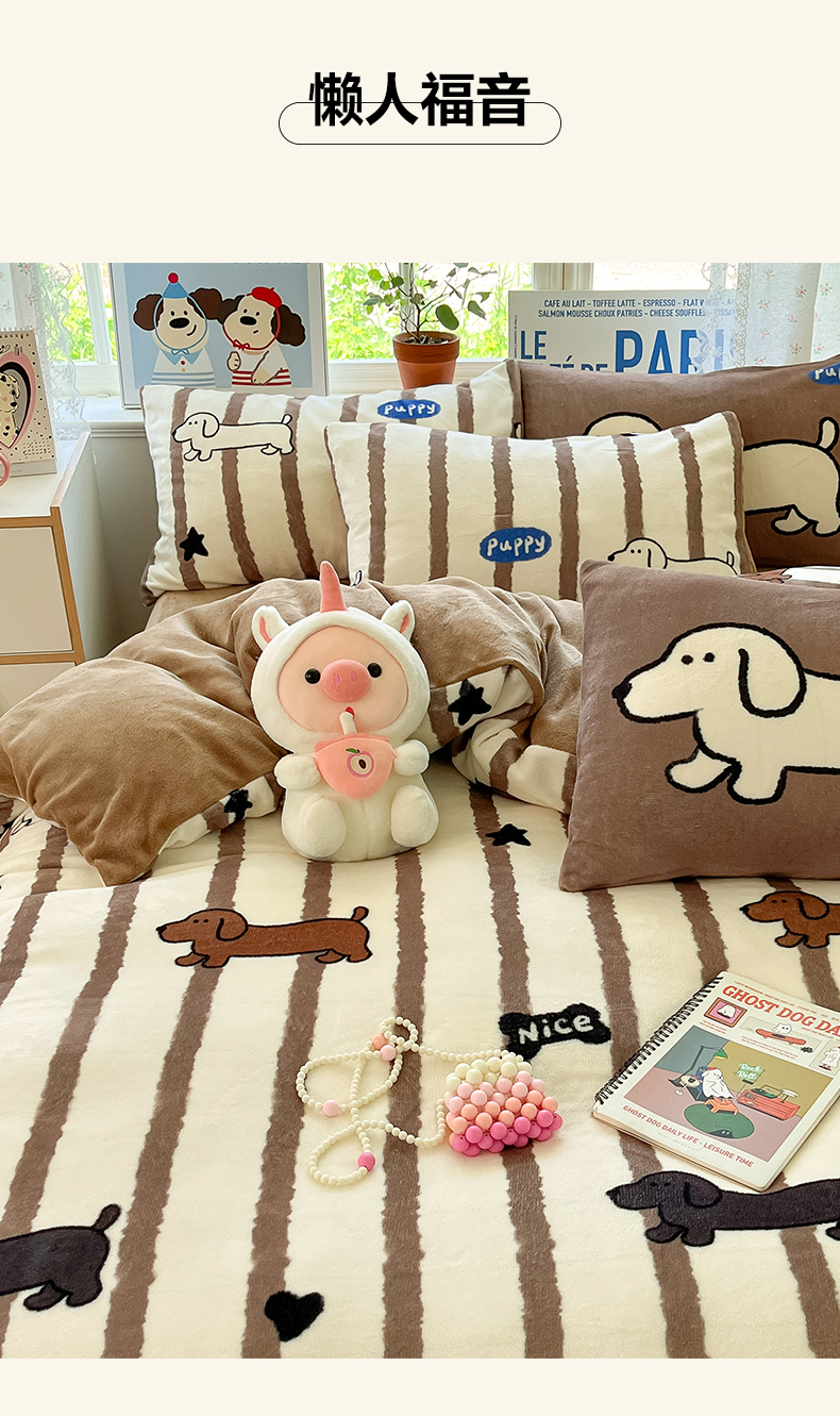 如一 2025新款高克重卡通印花牛奶绒四件套第二批 幸运狗