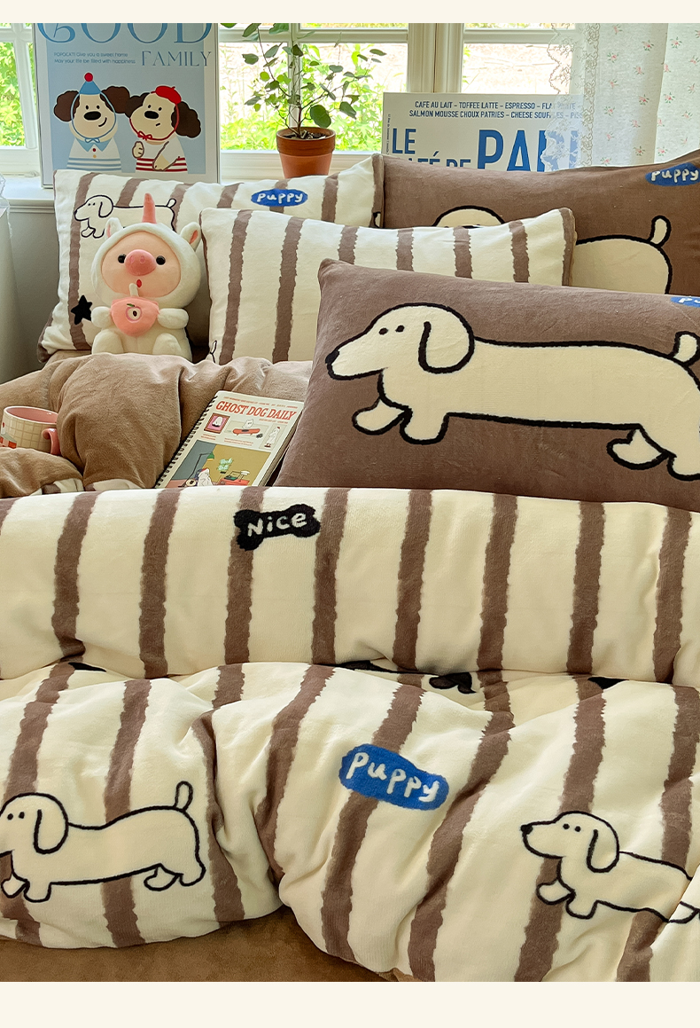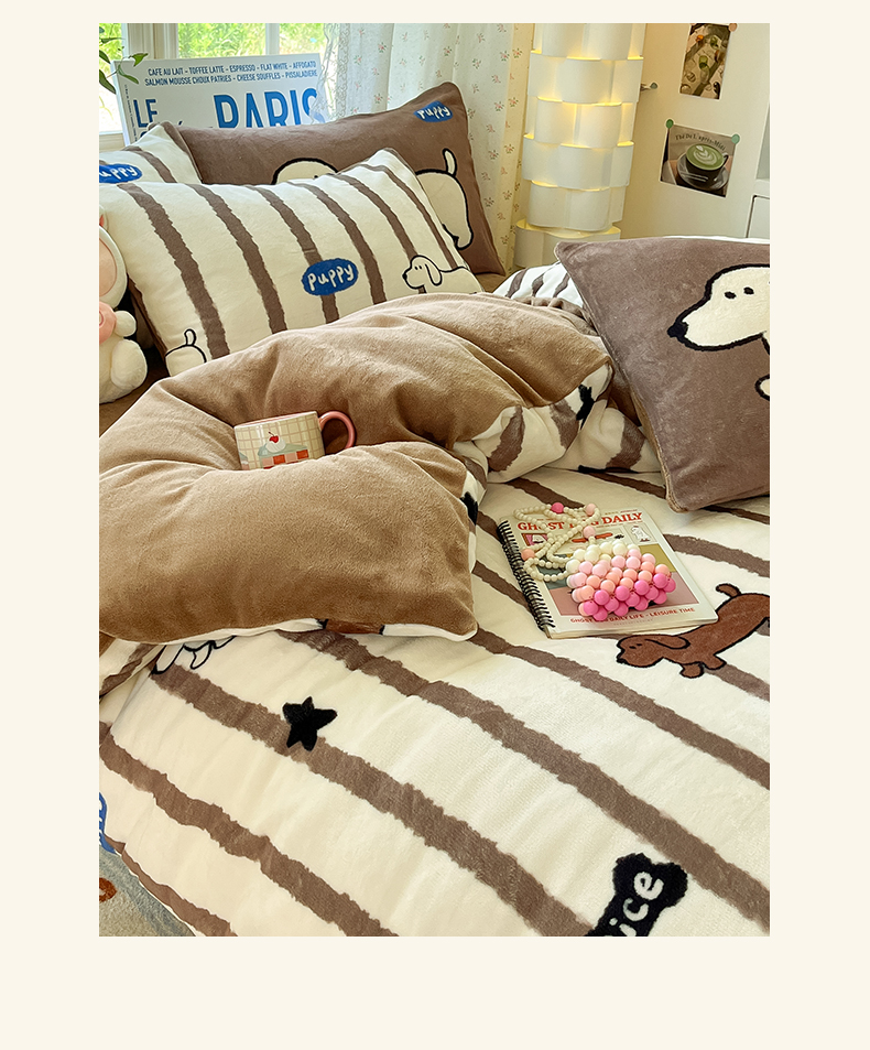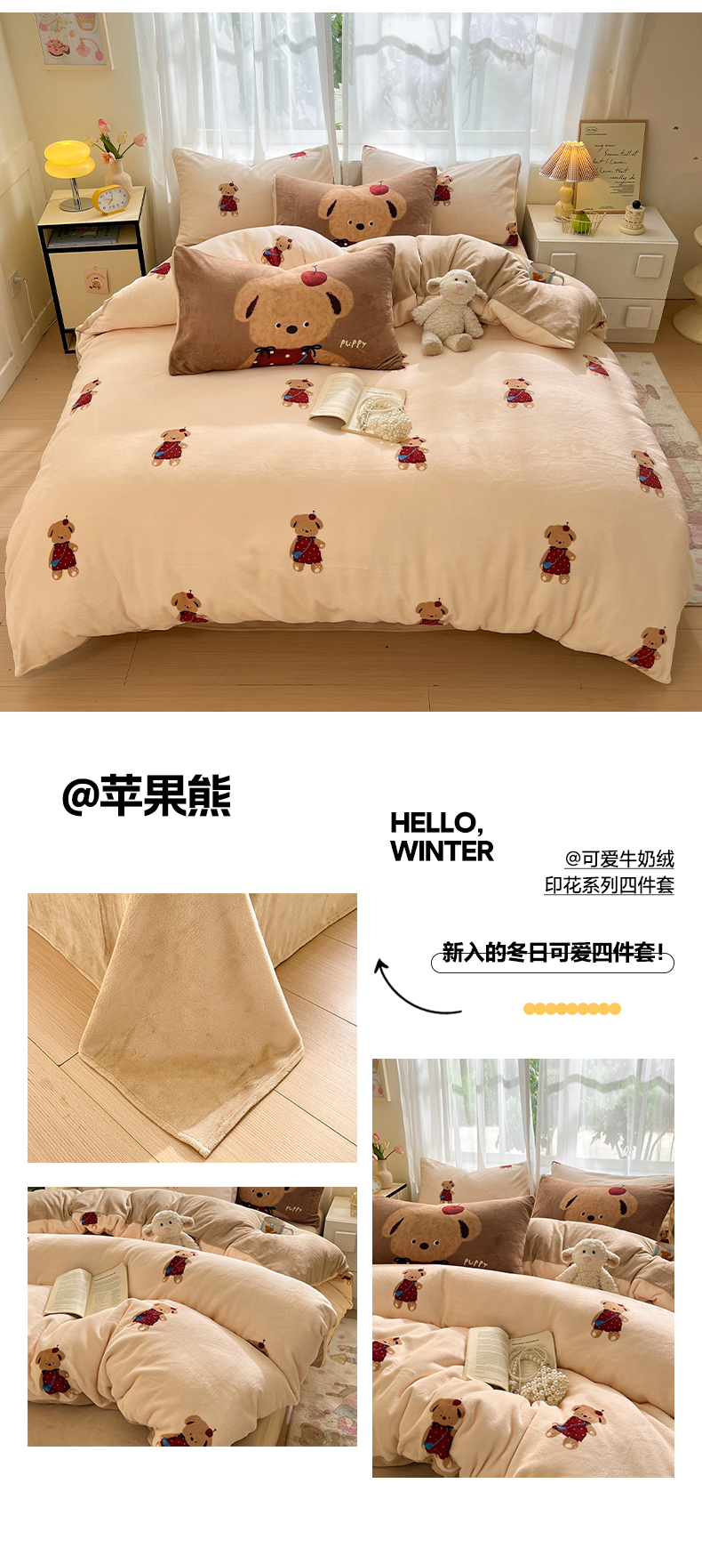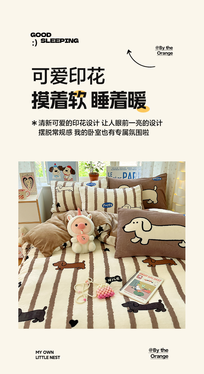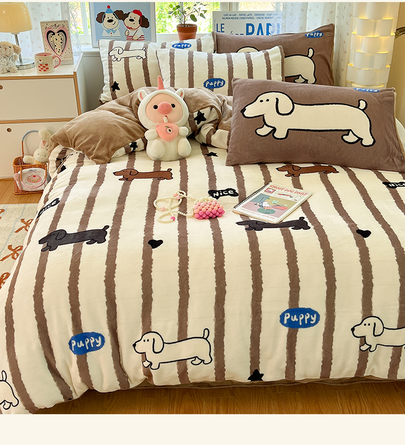 如一 2025新款高克重卡通印花牛奶绒四件套第二批 幸运狗