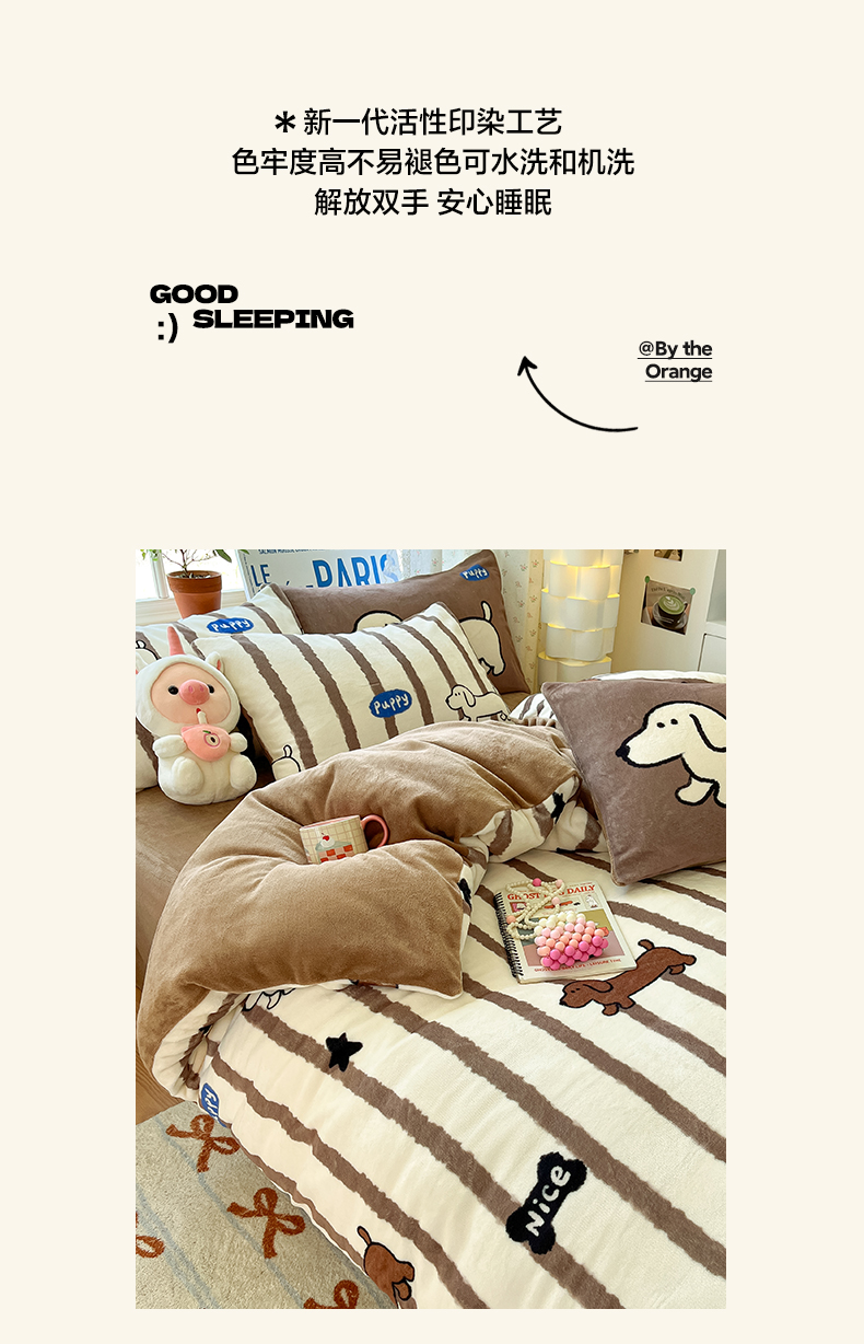 商品名称:如一 2025新款高克重卡通印花牛奶绒四件套第二批 幸运狗