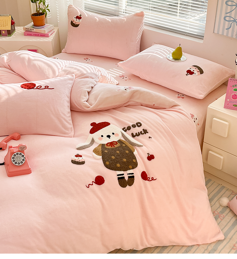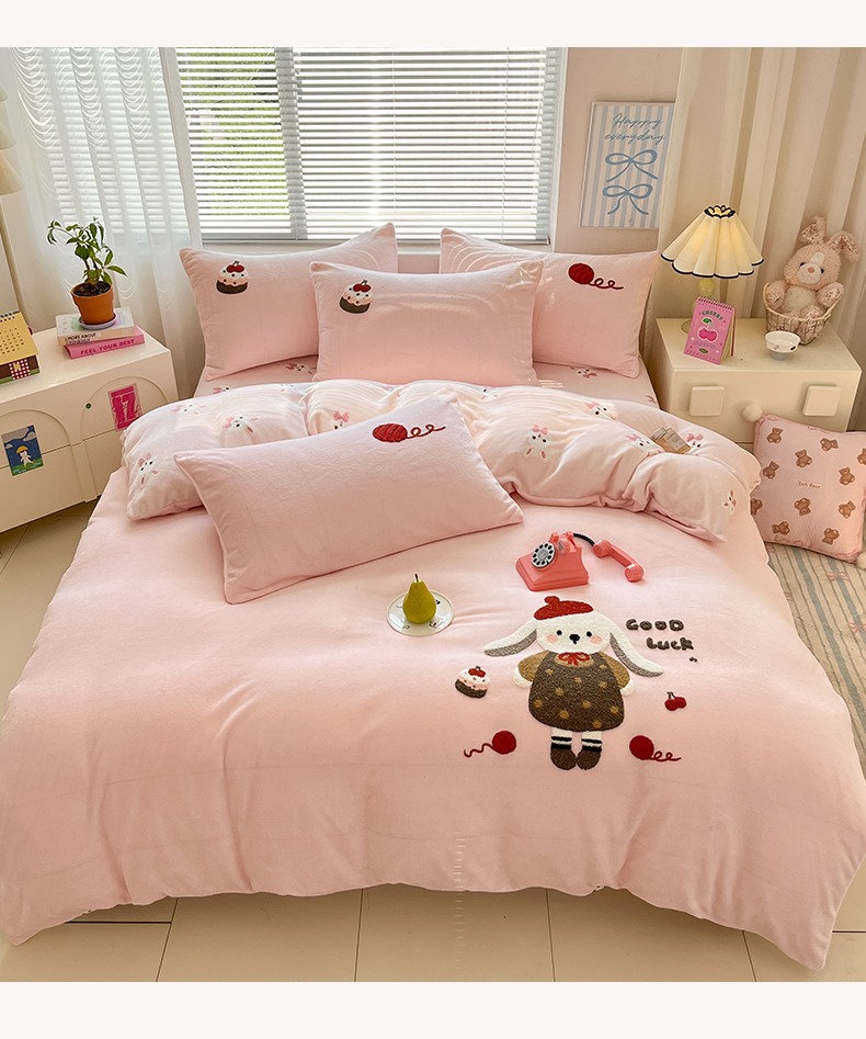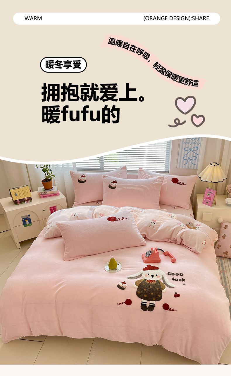当前位置: 91家纺网 > 商品网购 > 床品套件 > 四件套 > 牛奶绒四件套 > 寐居家纺 2025新款牛奶绒大版毛巾绣床单款四件套 好运兔