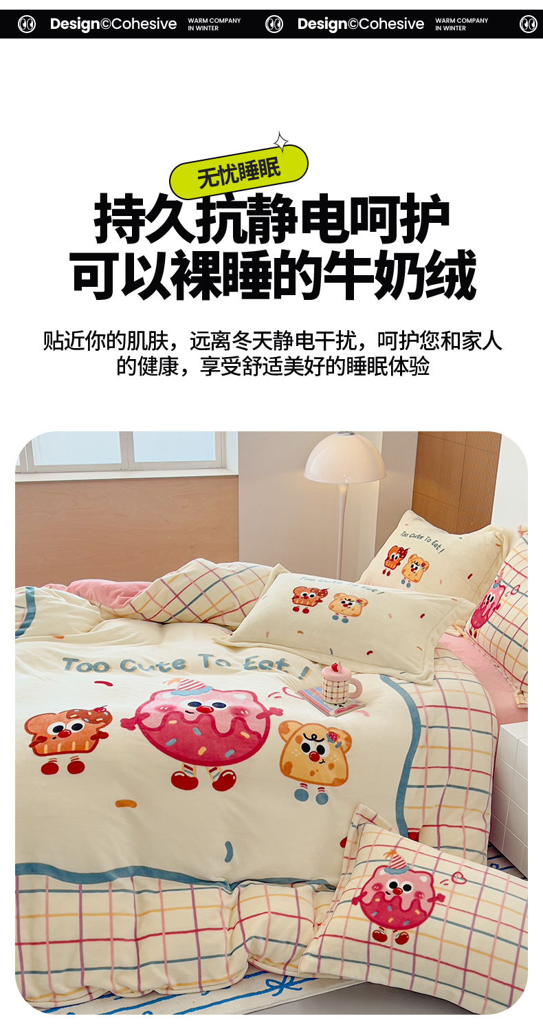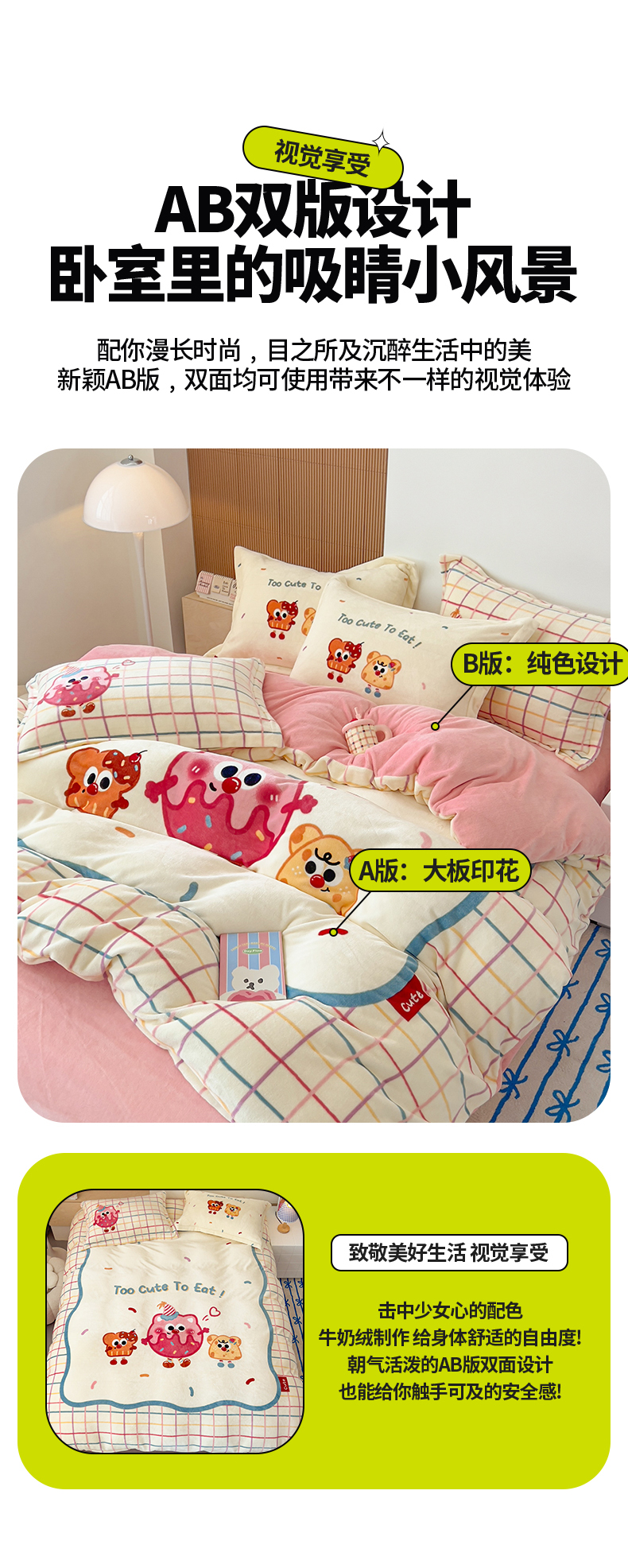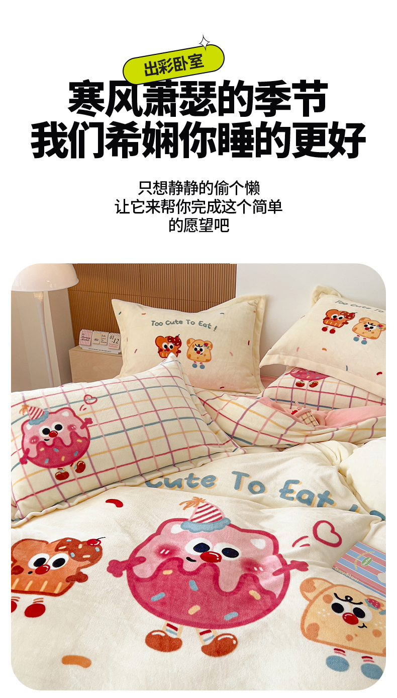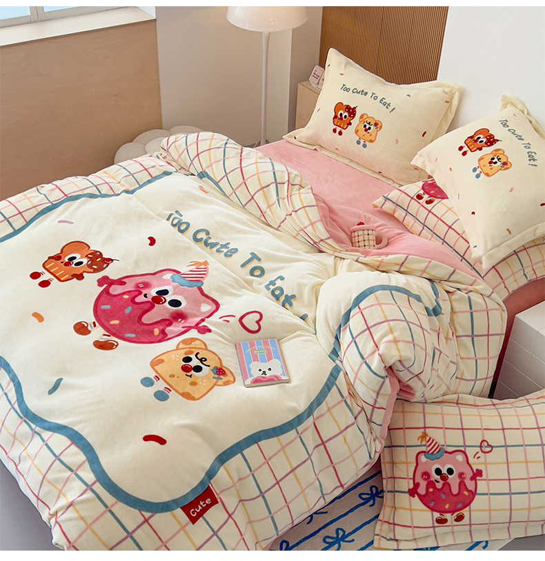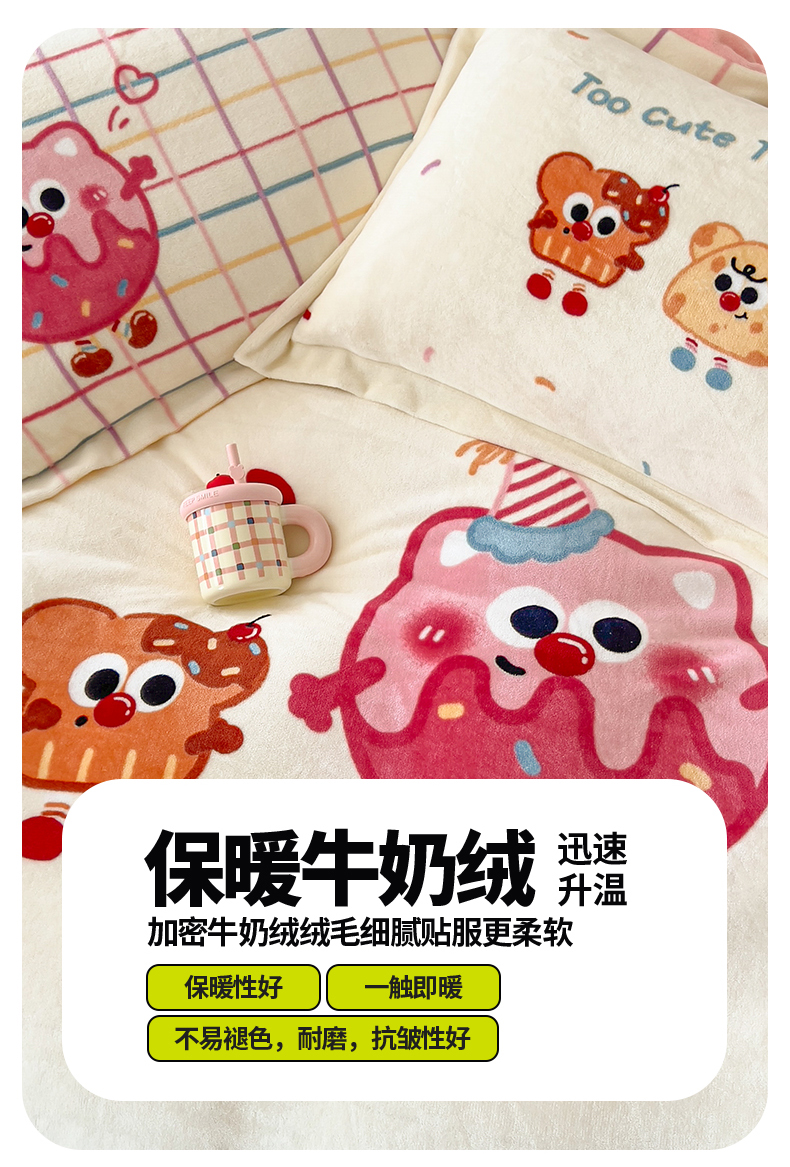 当前位置: 91家纺网 > 商品网购 > 床品套件 > 四件套 > 其它四件套 > 慕晨 2025新款卡通可爱大版印花牛奶绒加厚保暖小清新四件套直播 奶油芝士