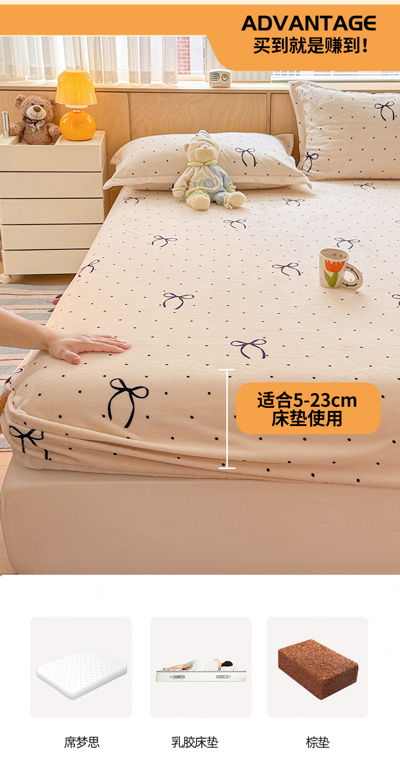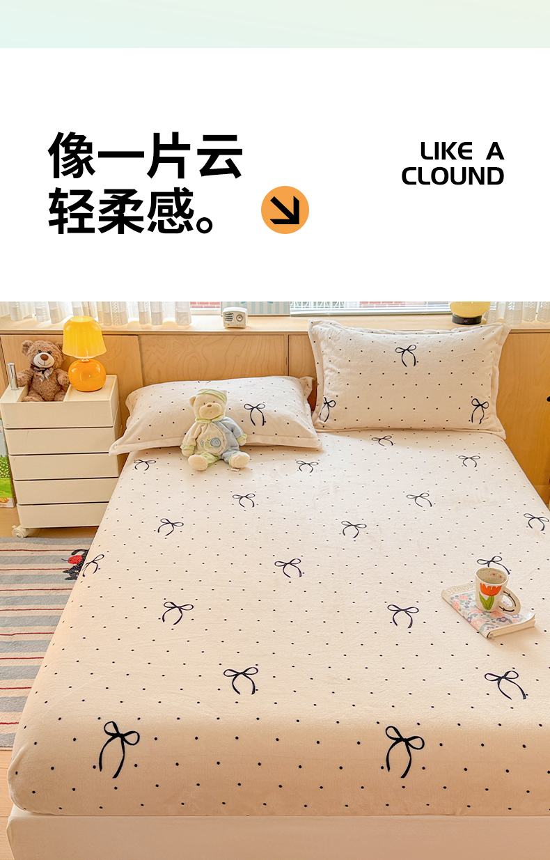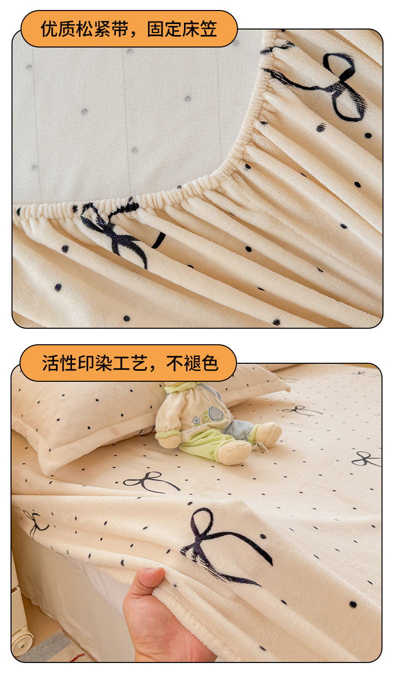 名兮家居 2025新款高克重印花牛奶绒单床笠床笠单件 小确幸