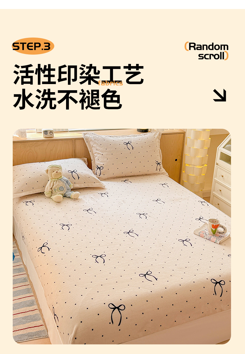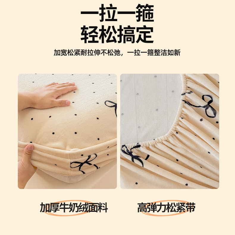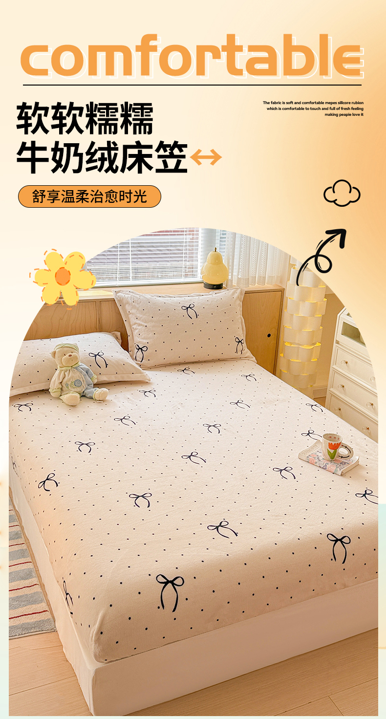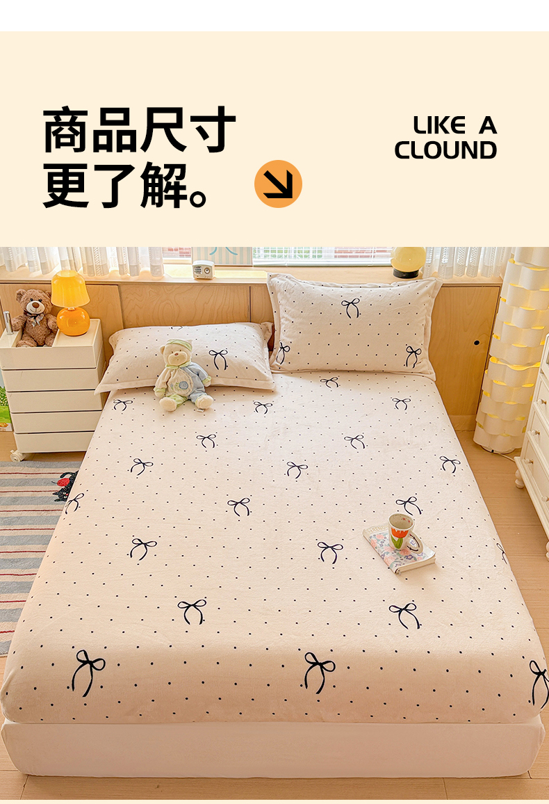 名兮家居 2025新款高克重印花牛奶绒单床笠床笠单件 小确幸