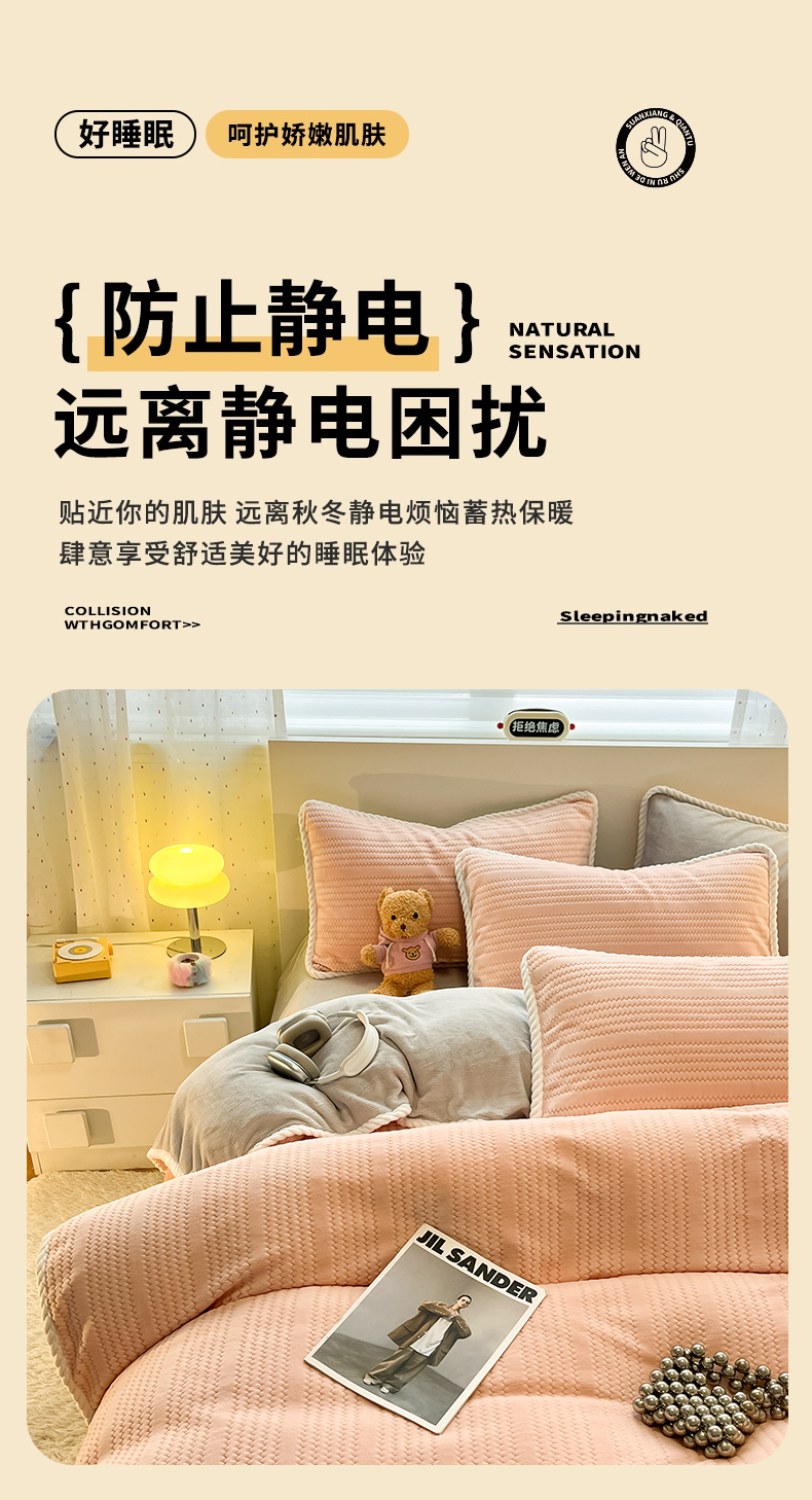 当前位置: 91家纺网 > 商品网购 > 床品套件 > 四件套 > 牛奶绒四件套 > 小叮当家纺仓储工厂店 2025新款亲肤舒适成品提花包边牛奶绒四件套-提花 提花-奶白