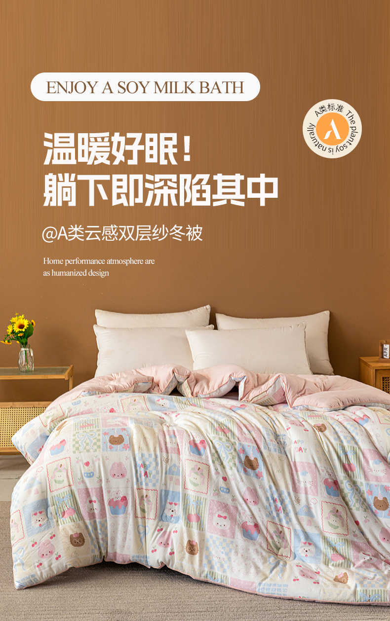 • 91家纺网 家纺一手货源 找家纺 小叮当家纺仓储工厂店 2025新款A类云感双层纱冬被春秋被被子被芯 奶油块块