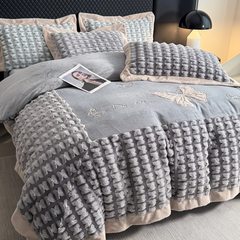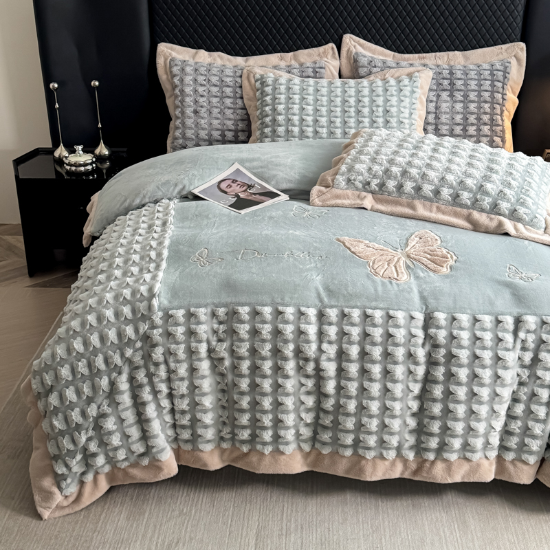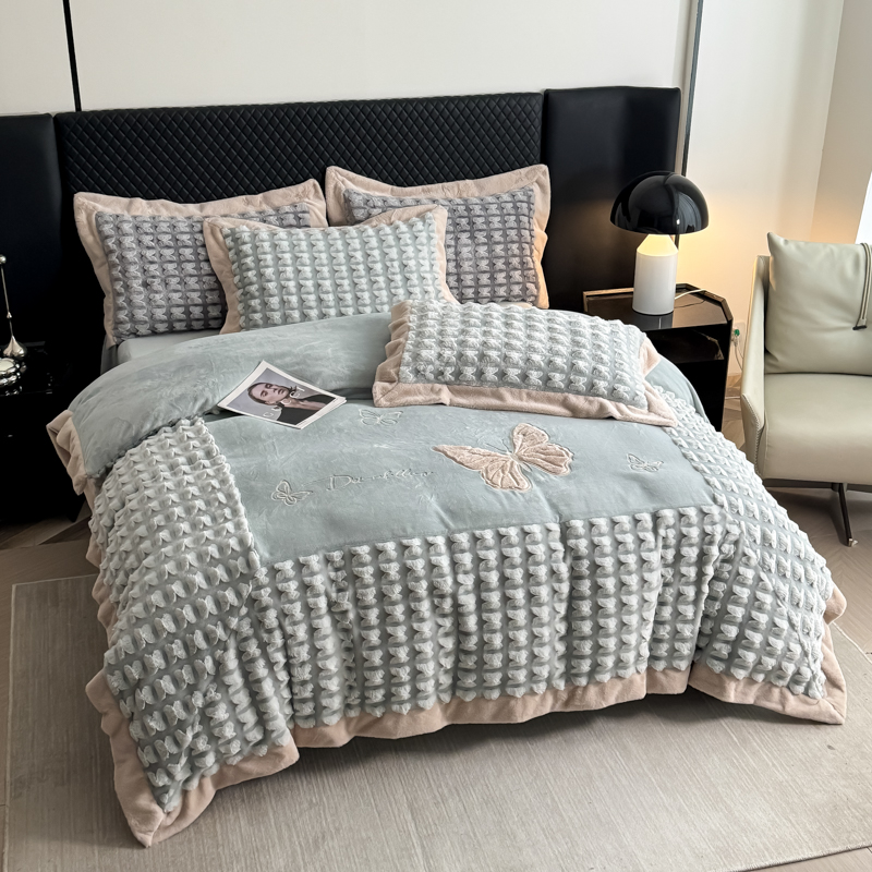 商品名称:保罗圣迪奥 2025新款350克剪花牛奶绒四件套-三拼角蝴蝶 三拼角蝴蝶-深绿