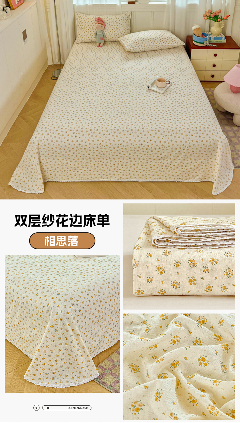 商品名称:(总)小叮当家纺仓储工厂店 2025新款云感提花双层纱花边单床单单件床单单品床单