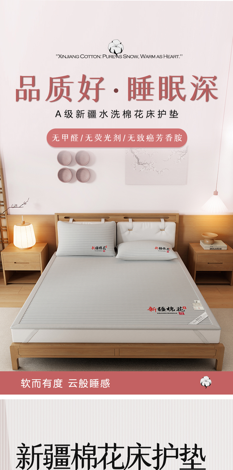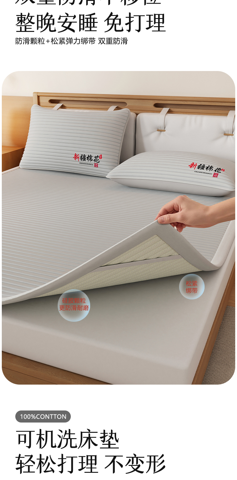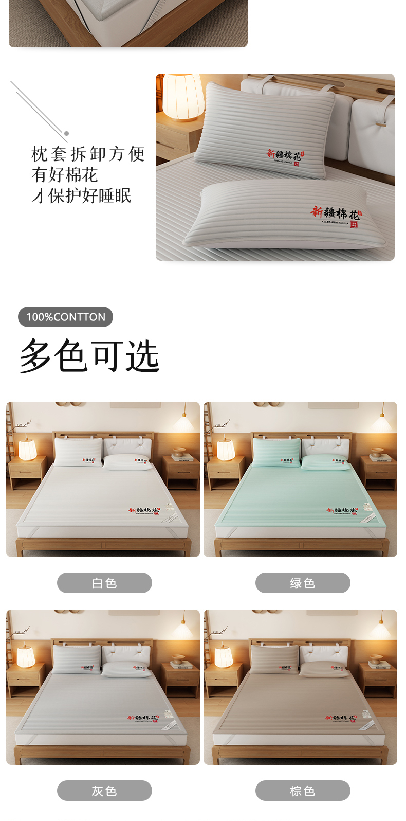 (总)缔莱(十三铭)被业 2025新款A类新疆水洗棉花床垫床护垫,新疆棉花软垫-白色,新疆棉花软垫-灰色,新疆棉花软垫-咖色,新疆棉花软垫-绿色,新疆棉花软垫-米色