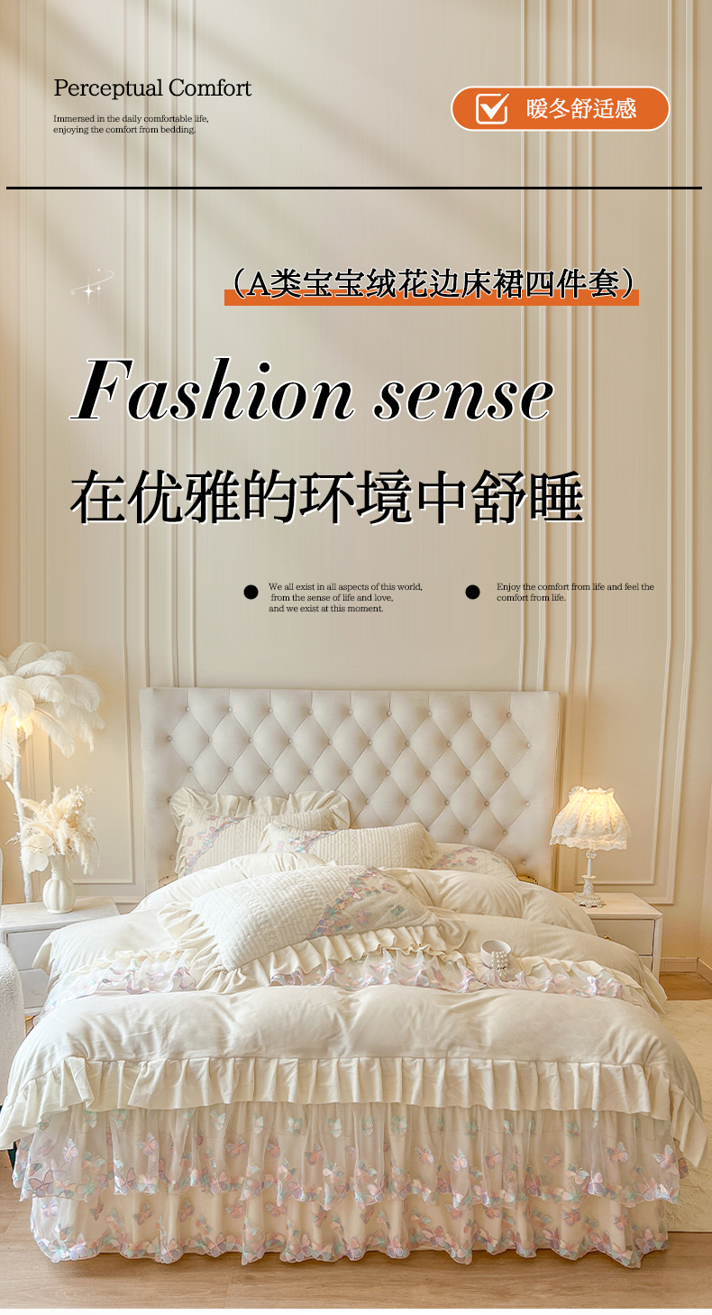 (总)瑞宝 2025新款宝宝绒重工刺绣花边床裙四件套-梦蝶(控价 318起),梦蝶-艾玛橙,梦蝶-蜜粉,梦蝶-豆绿,梦蝶-奶油米,梦蝶-浅透玉,梦蝶-香芋紫