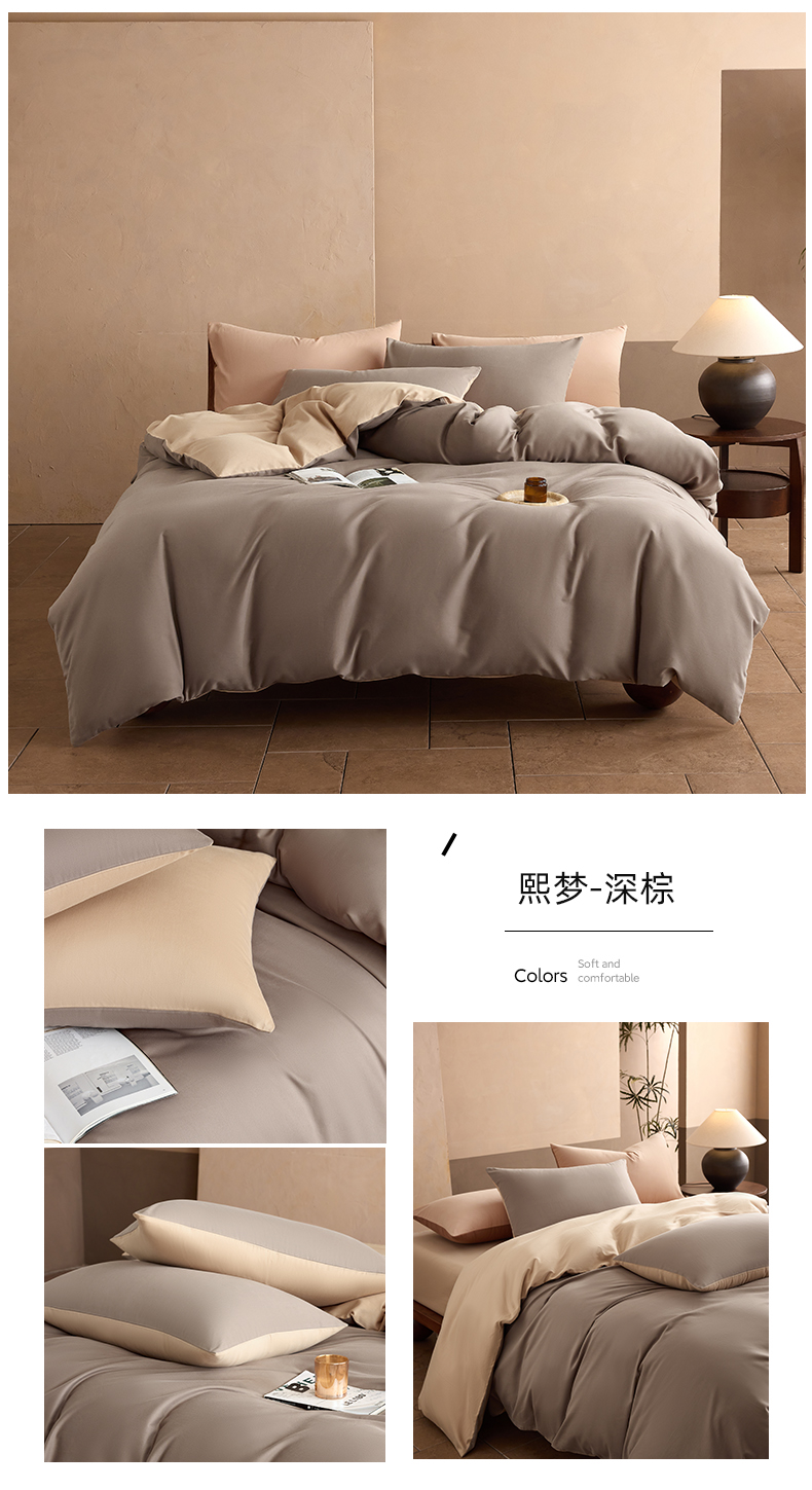 商品名称:寐居家纺 2025新款A类100支全棉贡缎磨毛纯色双拼四件套-熙梦 熙梦-鸢尾紫