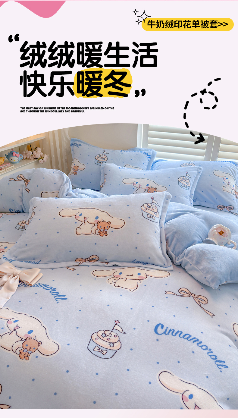 名兮家居 2025新款经典奥特曼-三丽鸥加厚牛奶绒单被套 甜品大耳狗