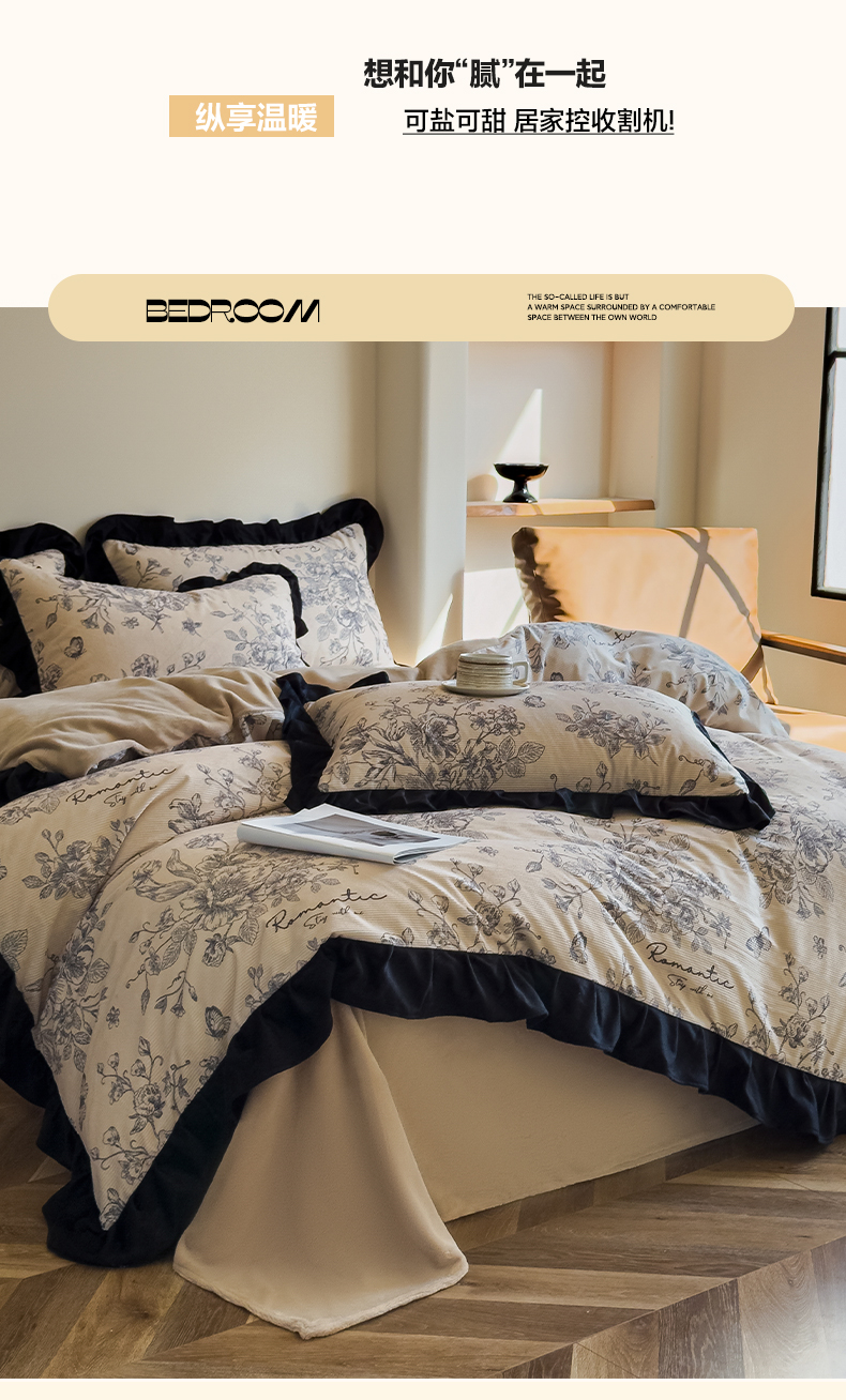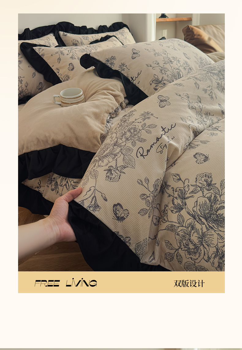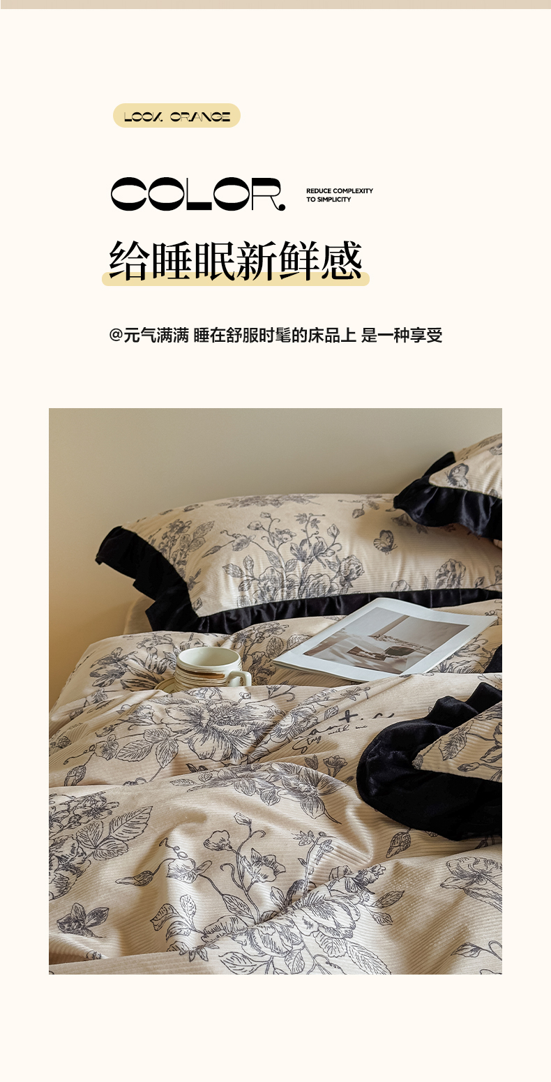 当前位置: 91家纺网 > 商品网购 > 床品套件 > 四件套 > 其它四件套 > 启发 2025新款法式赫本风灯芯绒印花四件套 法式庄园