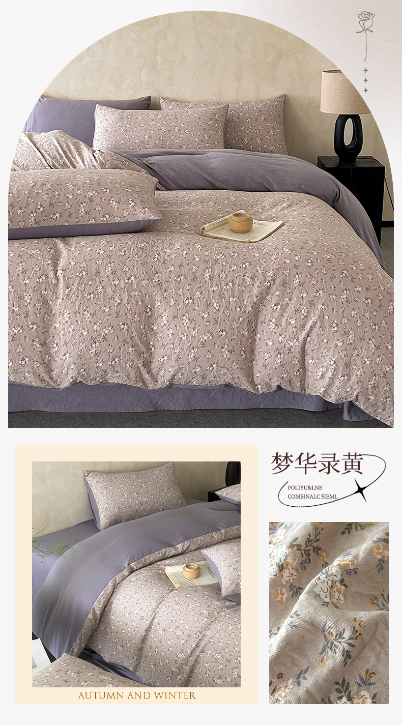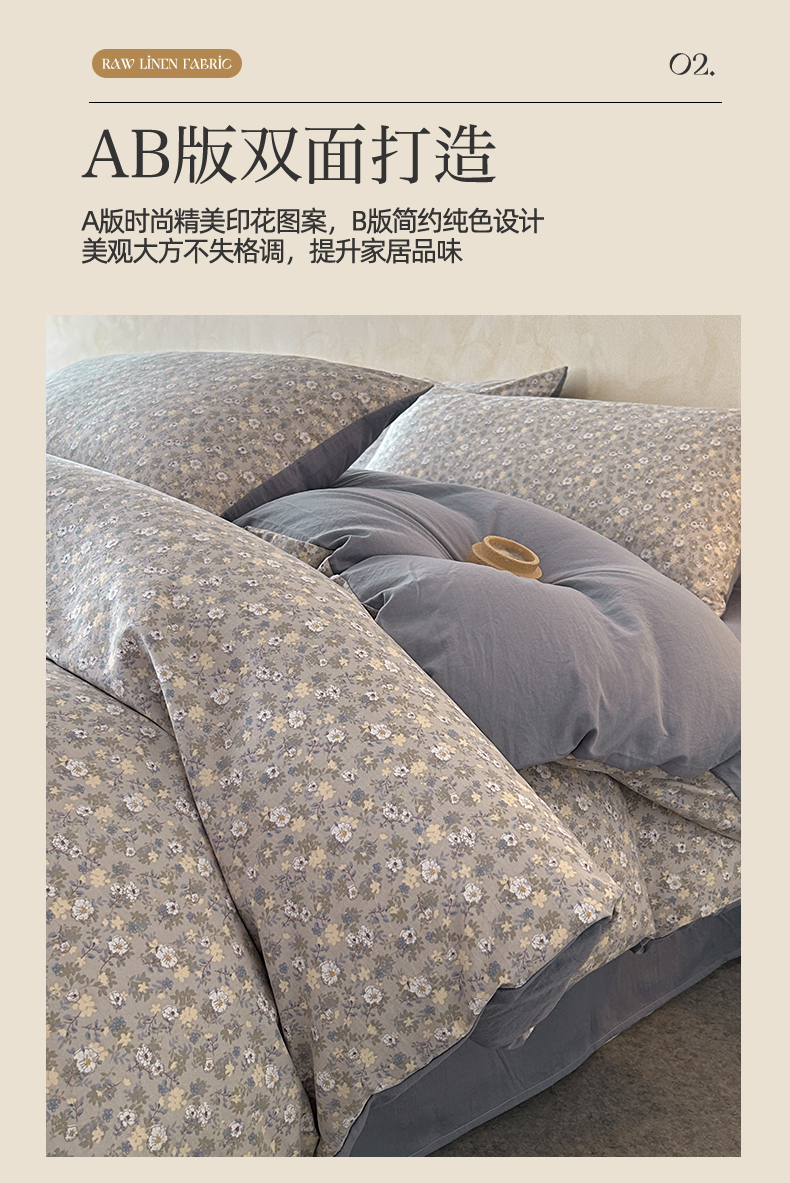 (总)如约 2025新款A类亲肤水洗原麻印花四件套,枫林晚,风木槿咖,慕雪红,锦瑟,迪奥咖,俏颜,可颂咖,可颂灰,风木槿紫,迪奥兰,可颂绿
