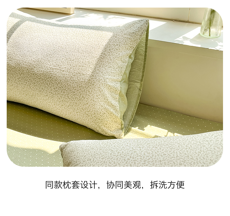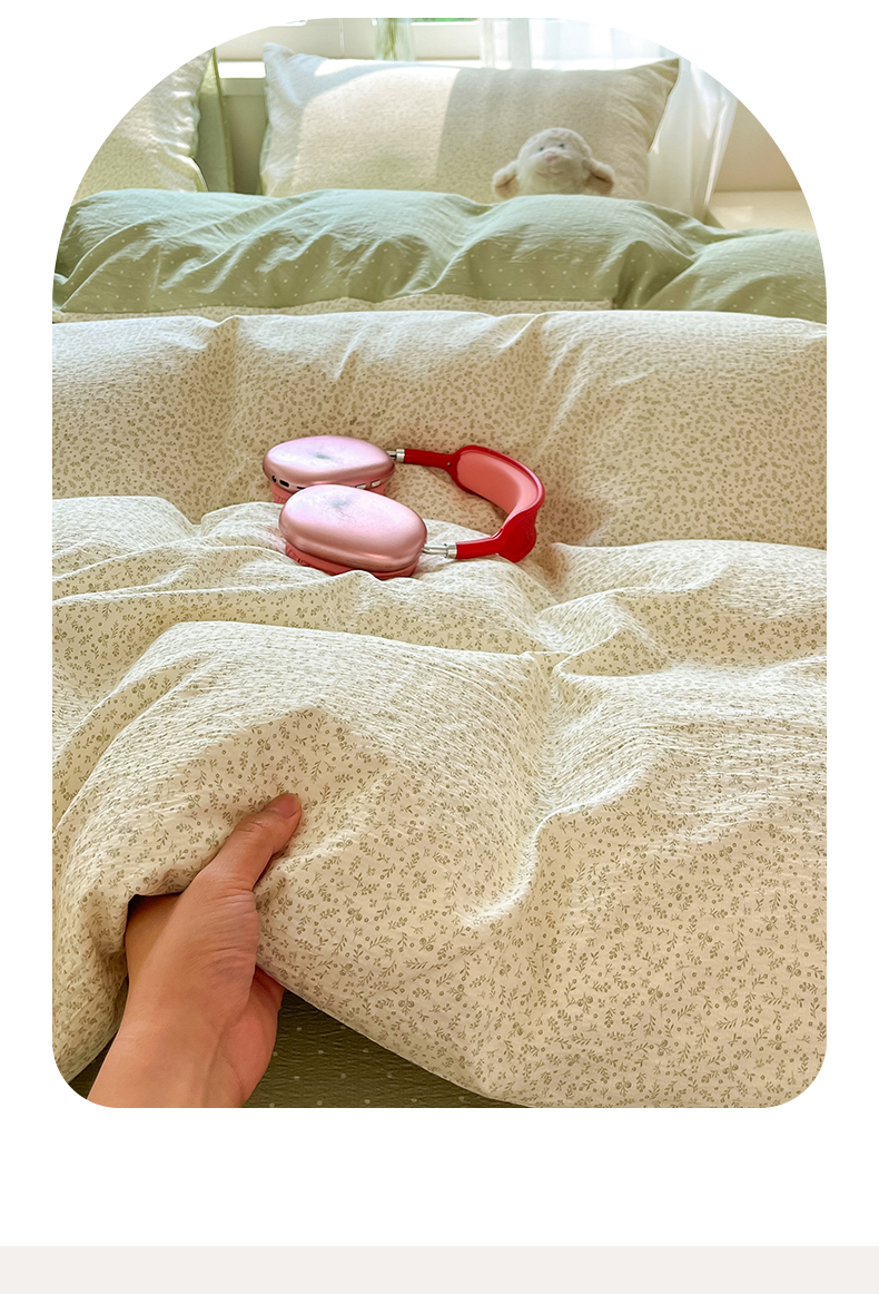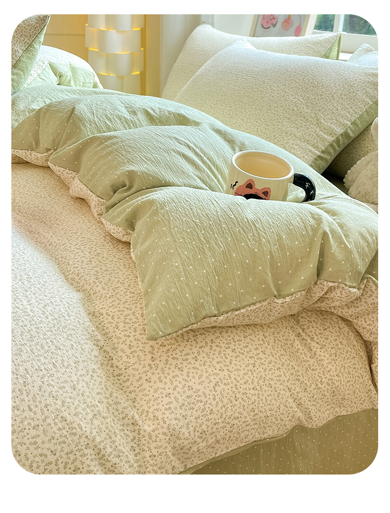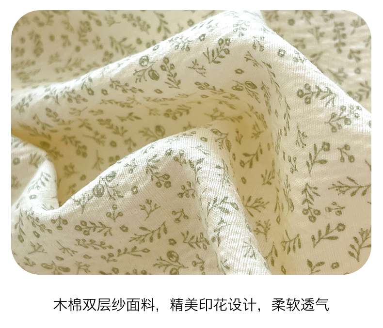 如约 2025新款木棉双层纱印花四件套 小花抹茶绿