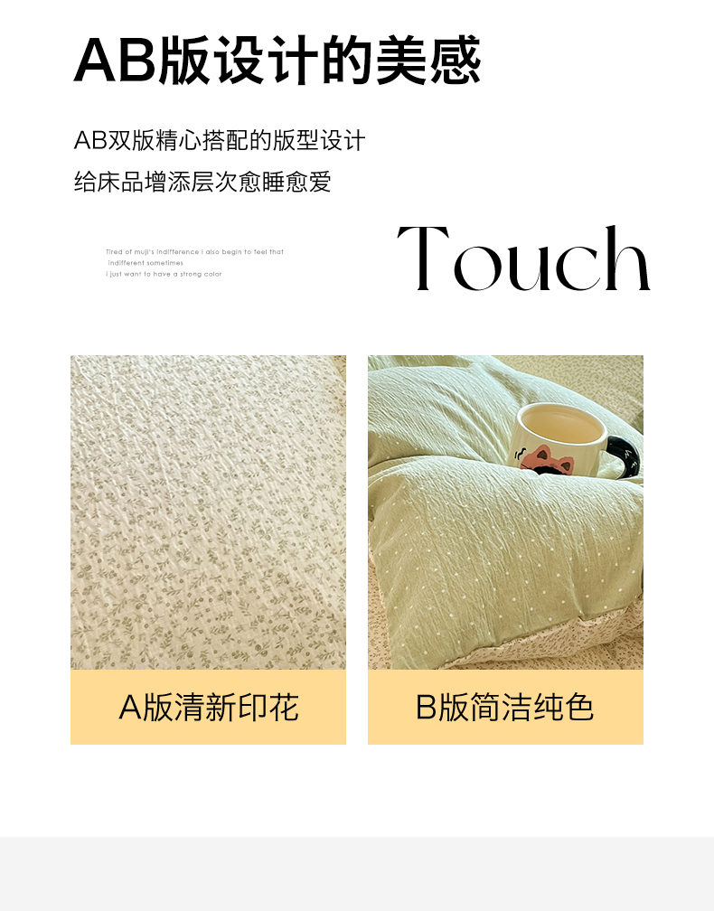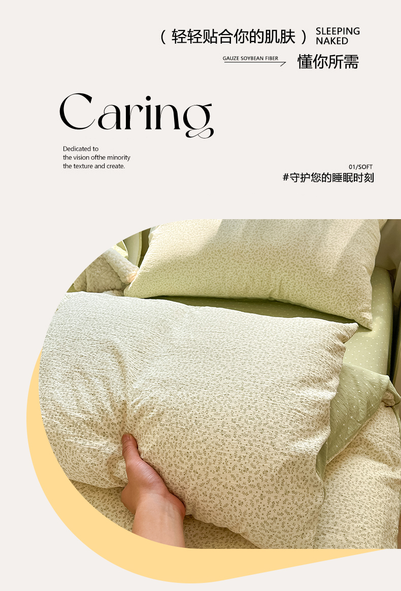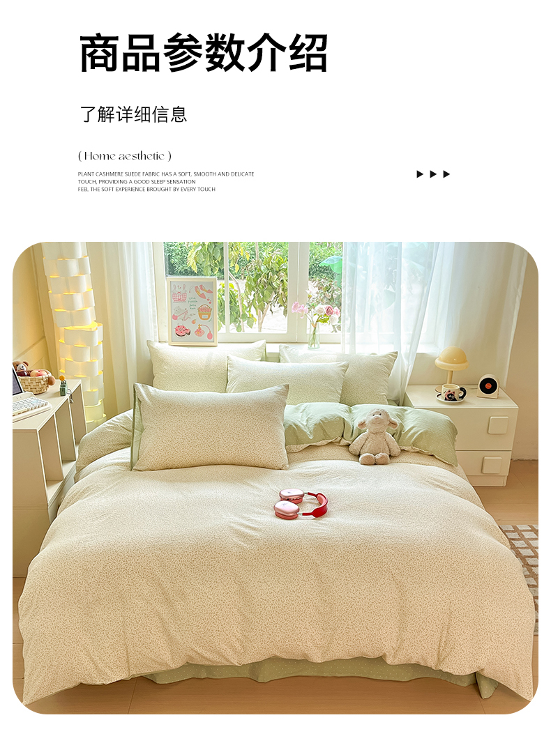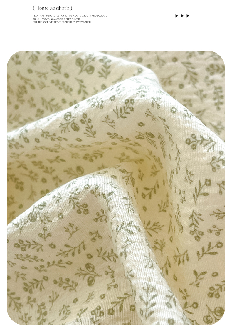 如约 2025新款木棉双层纱印花四件套 小花抹茶绿