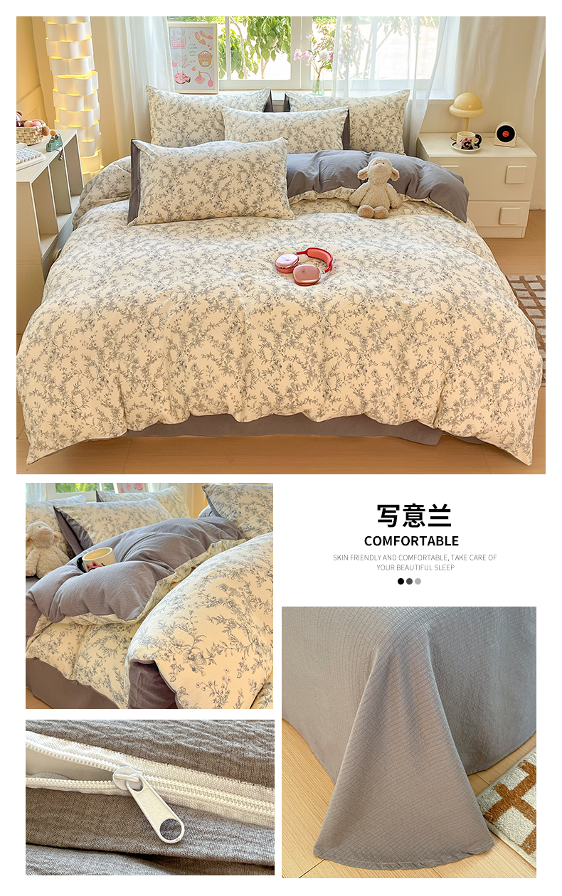 (总)如约 2025新款木棉双层纱印花四件套,小花蔷薇粉,春日来信,朝颜,邂逅,露华浓,草木集黄,写意兰,旧日告白,往事咖,罗格先生兰,小花巧克力棕,小花抹茶绿