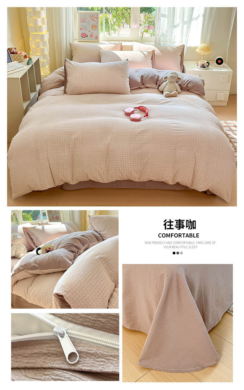 (总)如约 2025新款A类亲肤水洗原麻印花四件套,枫林晚,风木槿咖,慕雪红,锦瑟,迪奥咖,俏颜,可颂咖,可颂灰,风木槿紫,迪奥兰,可颂绿