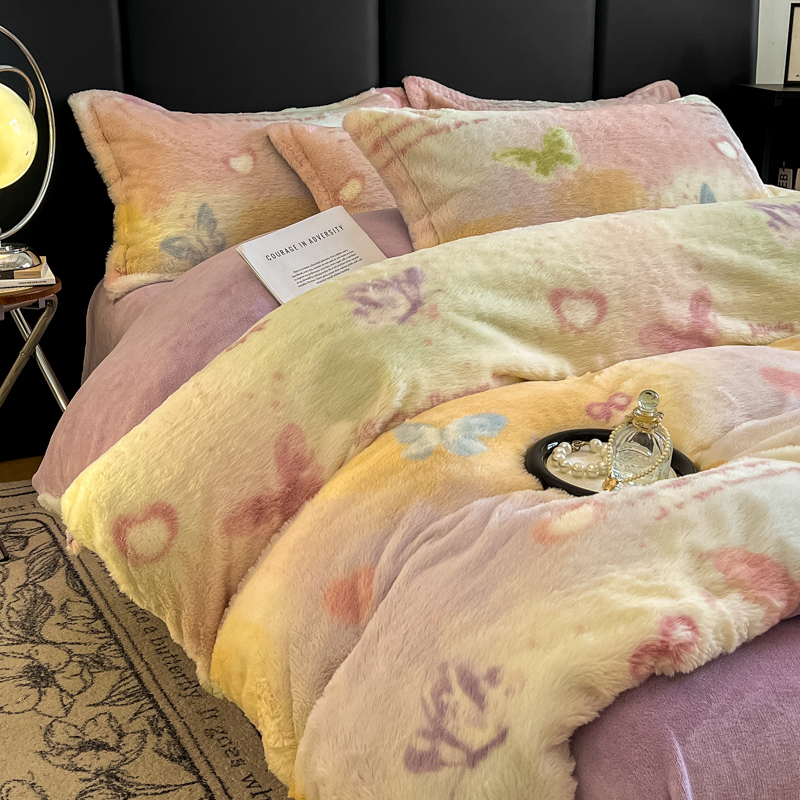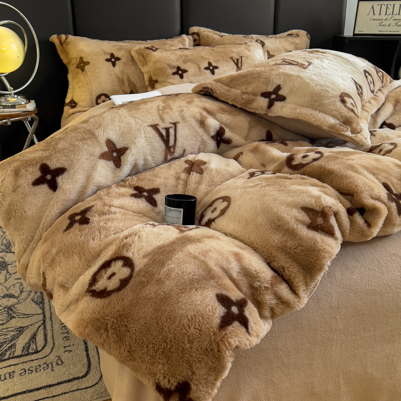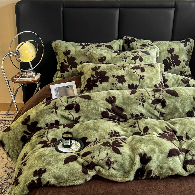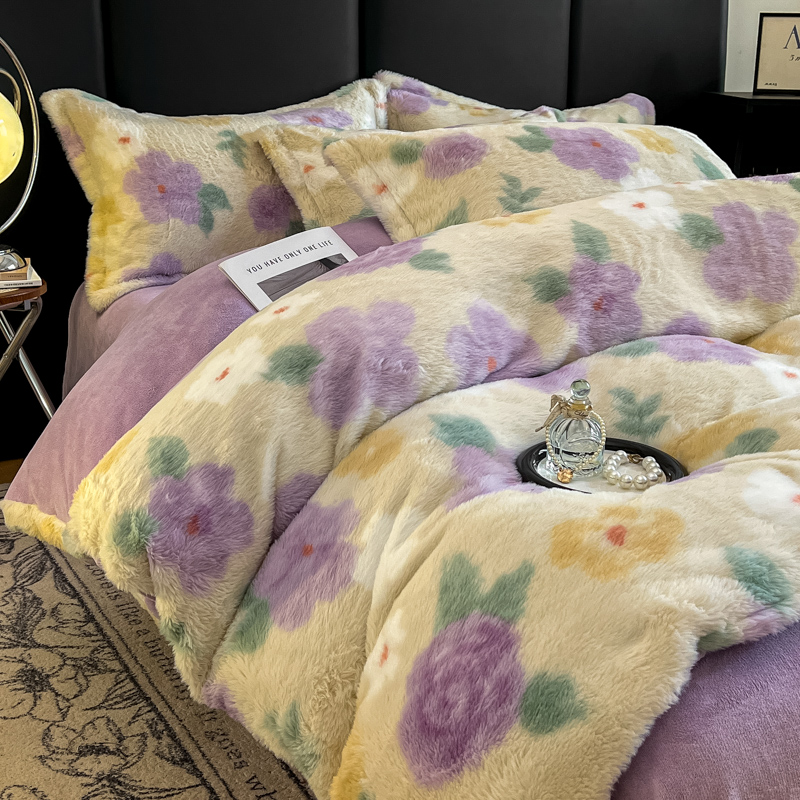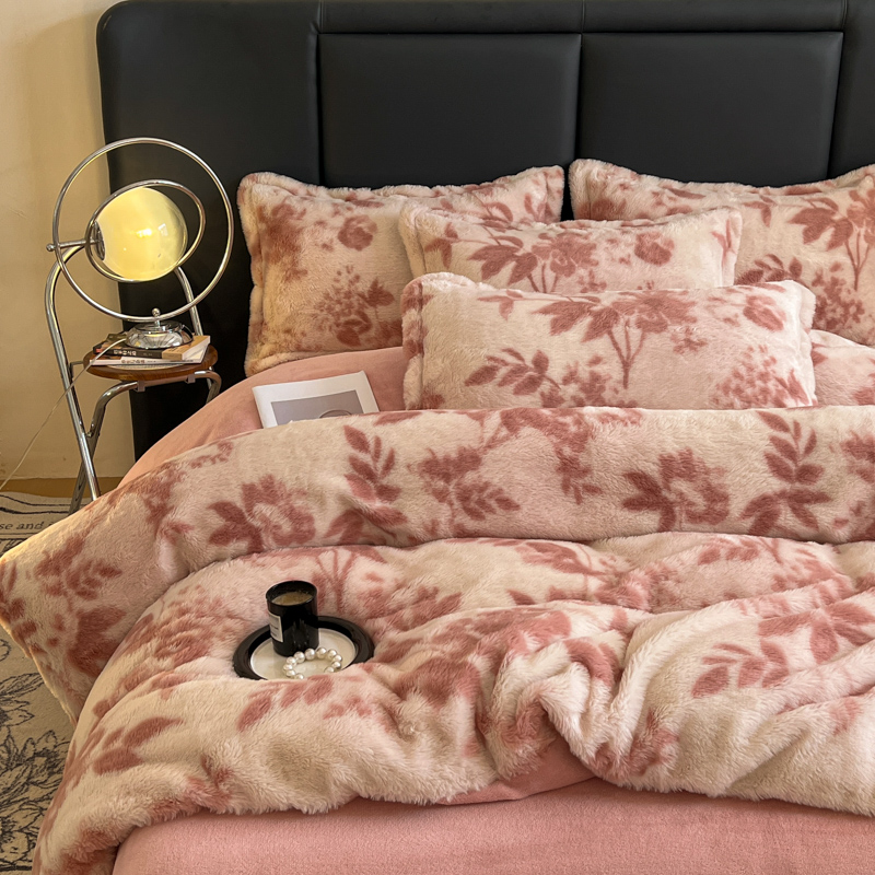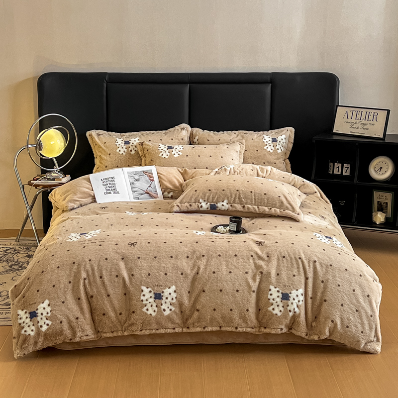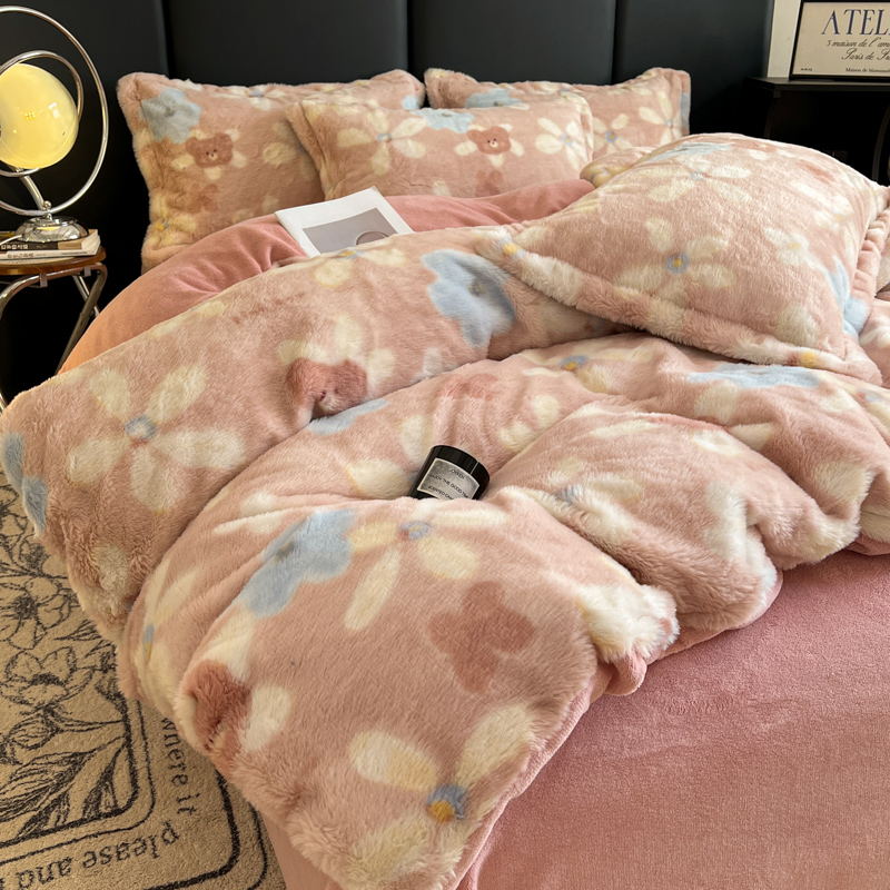 典曼家纺 2025新款亲肤舒适兔毛绒四件套 花园熊