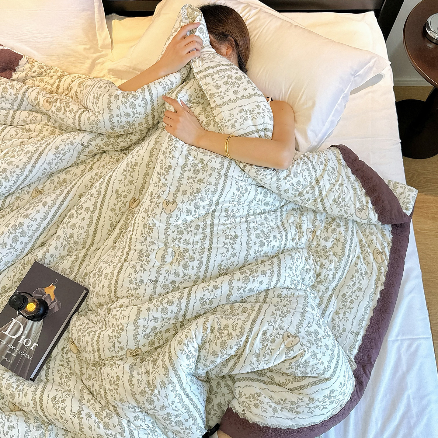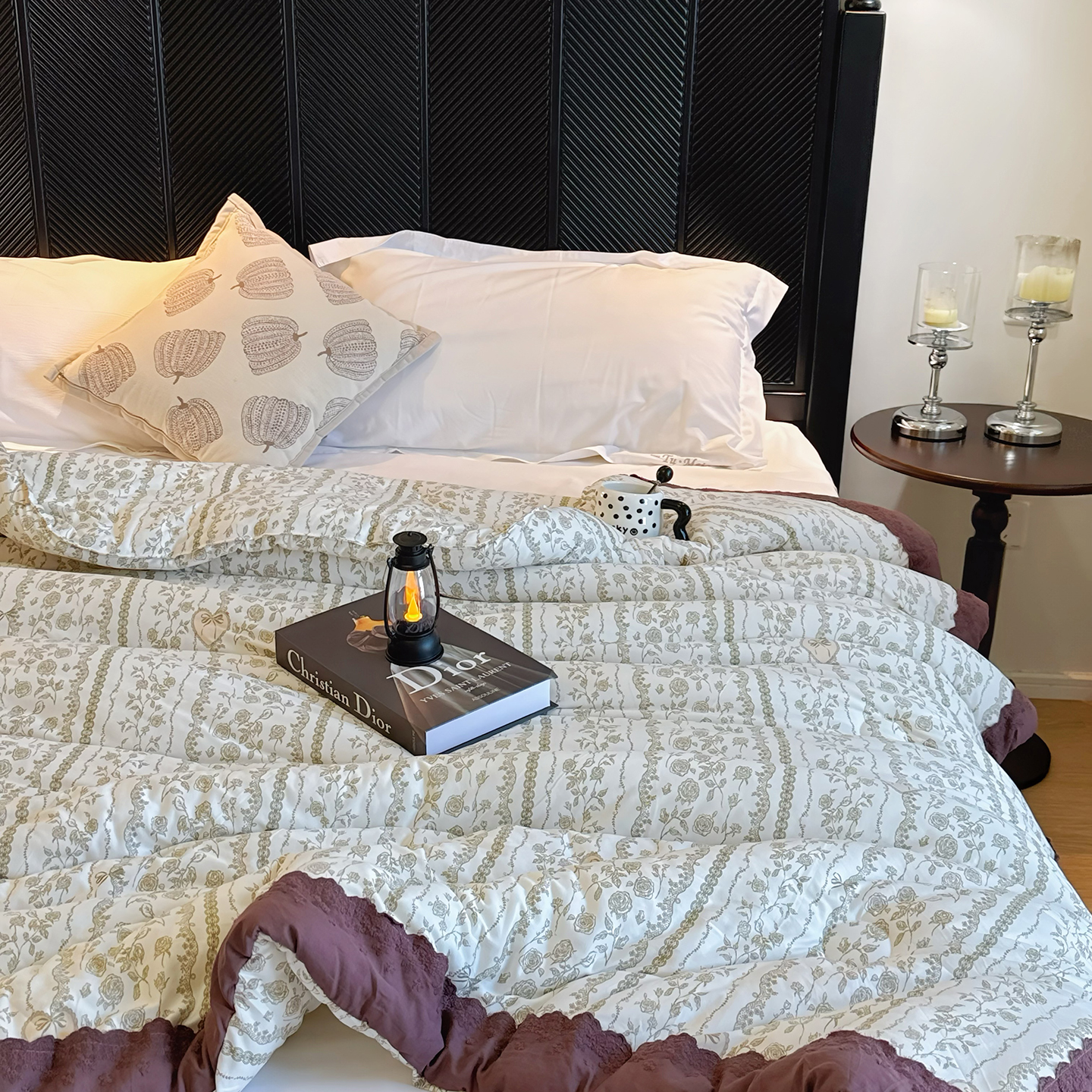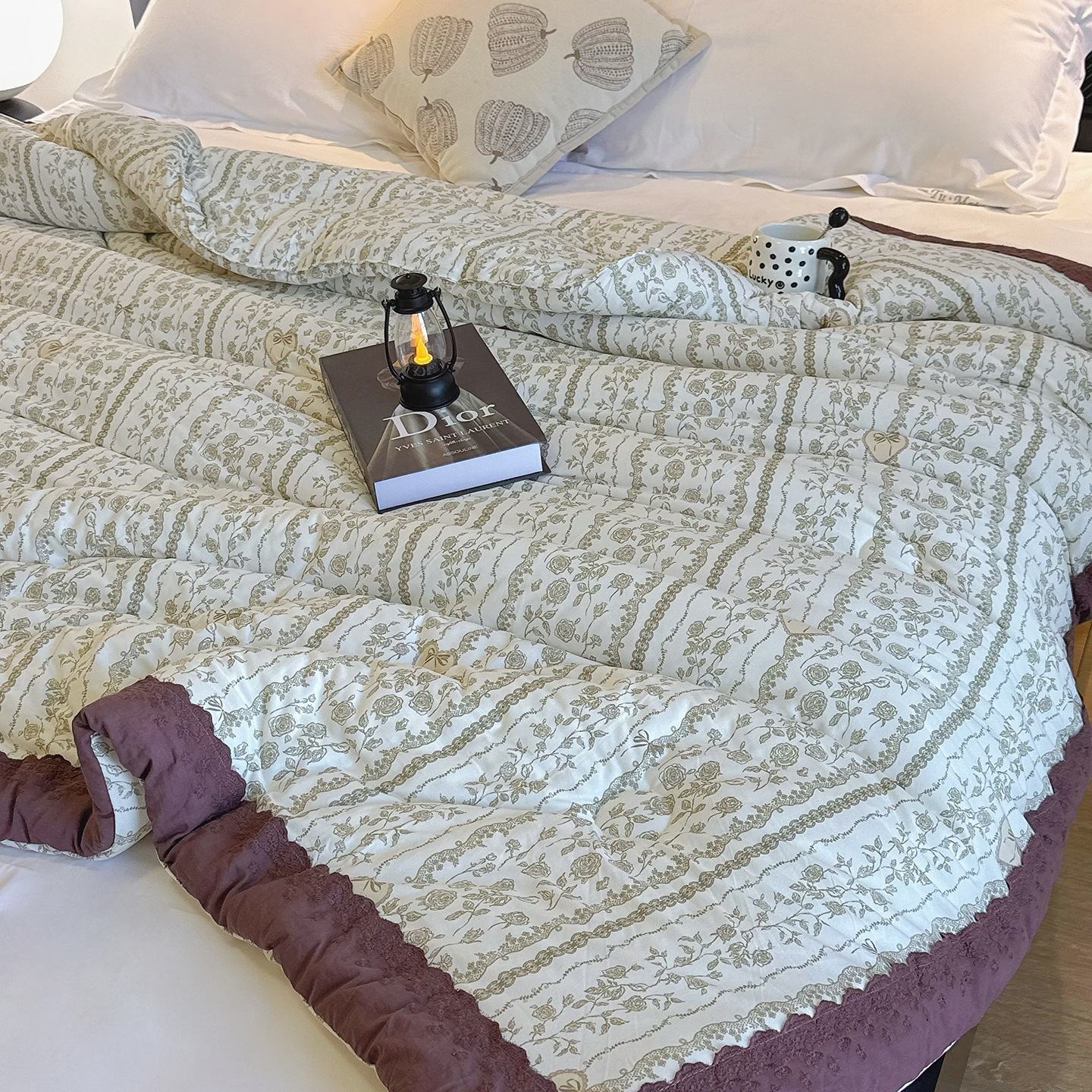 兜米家居 2025新款法式全棉花边针织春秋被四季被子被芯 浪漫花园