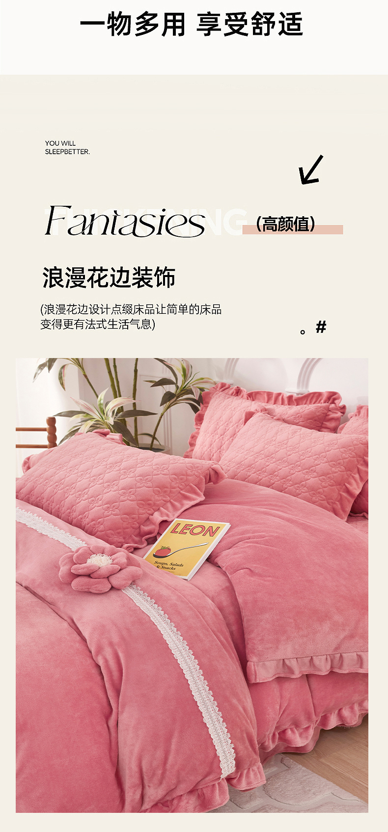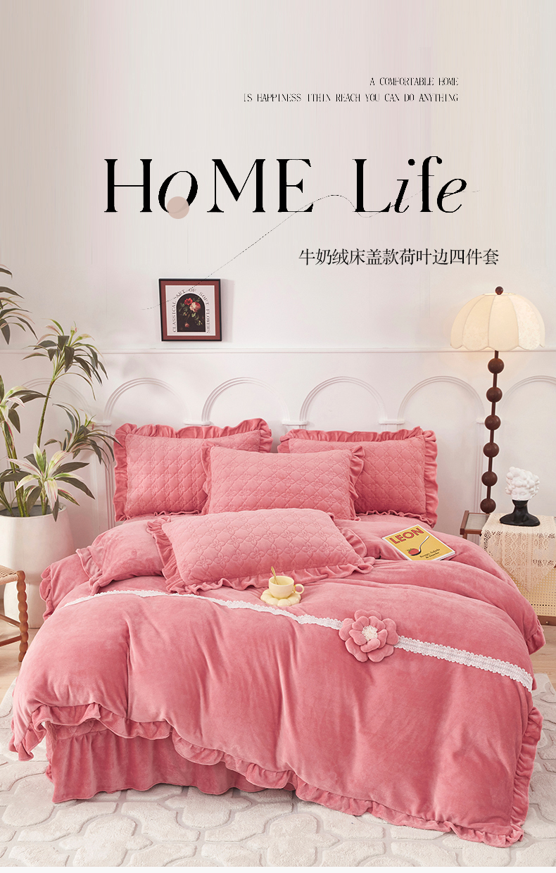 (总)卡迪亚家纺 2025新款牛奶绒床盖款荷叶边四件套-花颜,花颜-春湖绿,花颜-豆沙红,花颜-高级灰,花颜-活力蓝,花颜-魅力紫,花颜-抹茶绿,花颜-胭脂粉