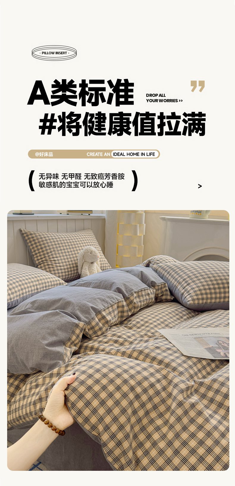 当前位置: 91家纺网 > 商品网购 > 床品套件 > 四件套 > 全棉普通四件套 > 宜家坊 2025新款A类全棉色织水洗棉四件套纯棉格子纯色被套学生宿舍三件套定制定做 春野-咖灰