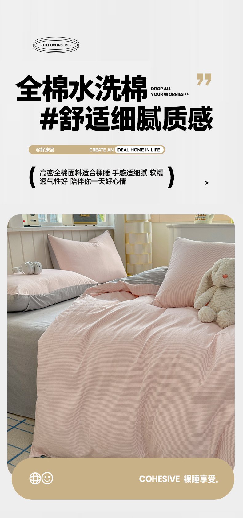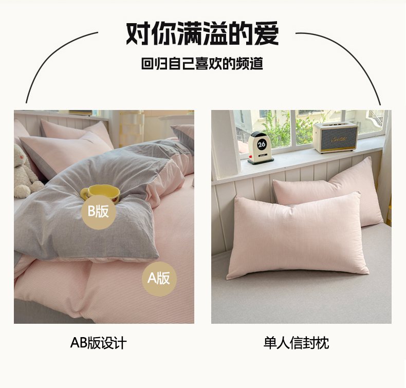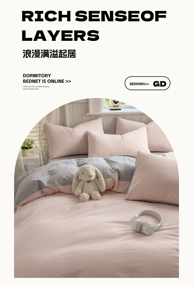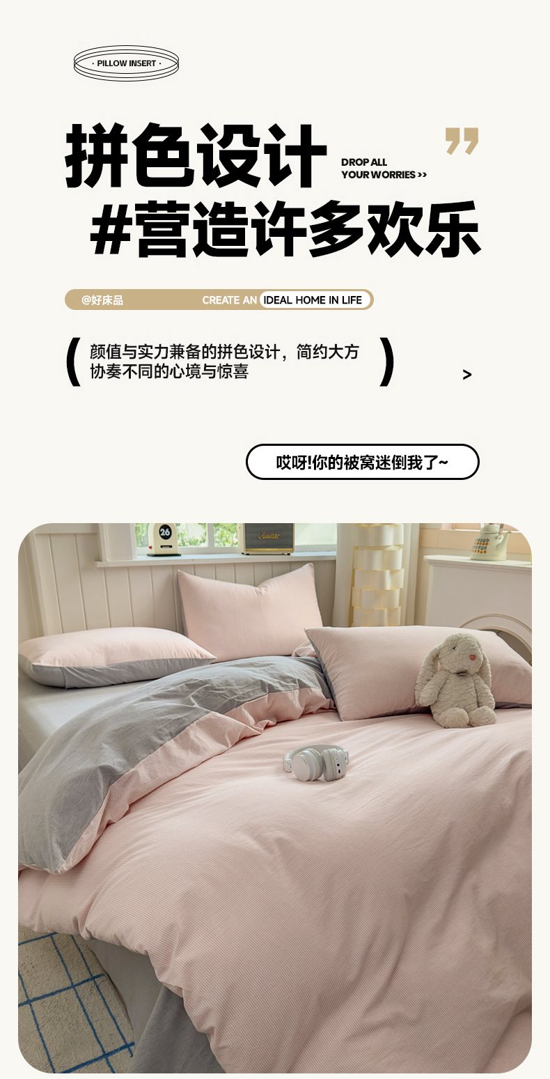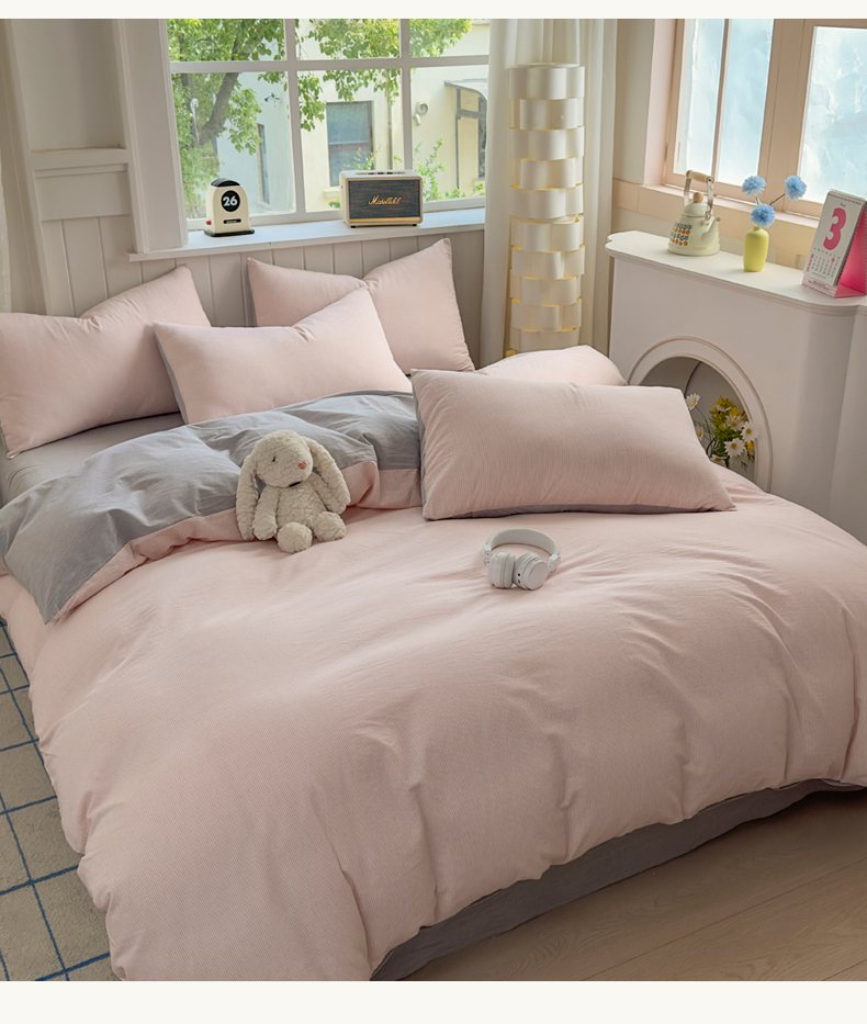 当前位置: 91家纺网 > 商品网购 > 床品套件 > 四件套 > 全棉普通四件套 > 宜家坊 2025新款A类全棉色织水洗棉四件套纯棉格子纯色被套学生宿舍三件套定制定做 密条-粉灰