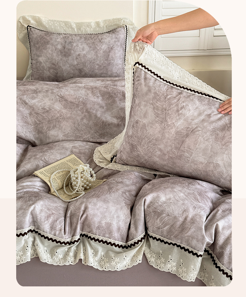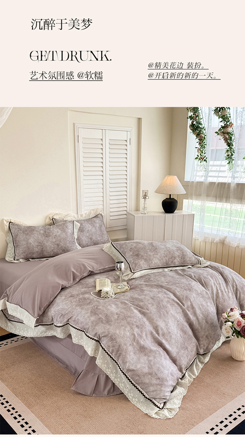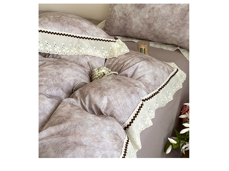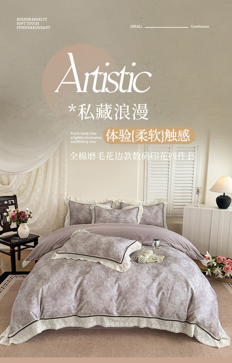 星座家纺 2025新款秋冬全棉花边数码印花磨毛四件套 羽絮-紫