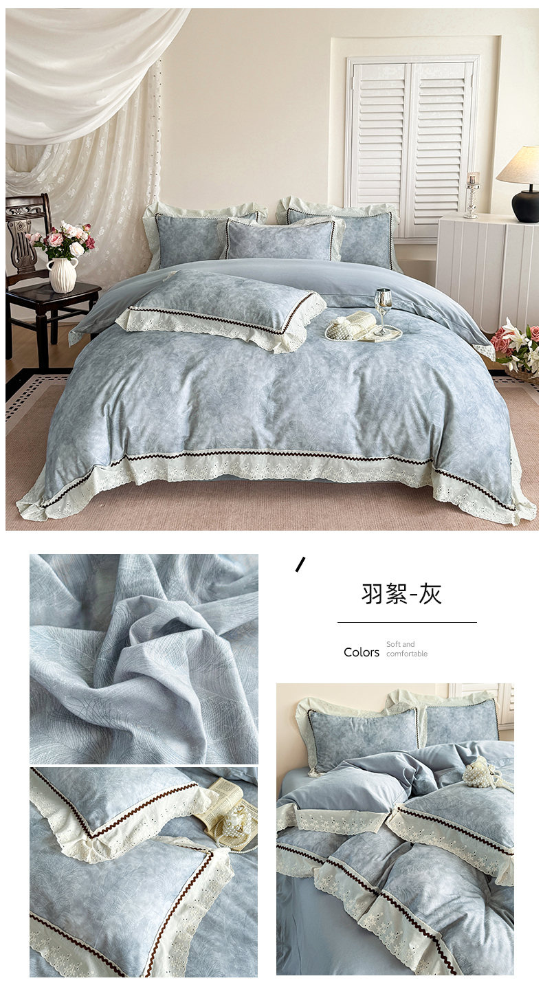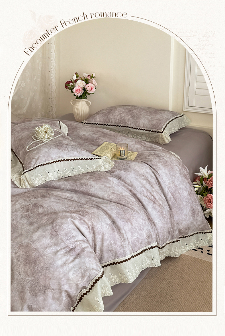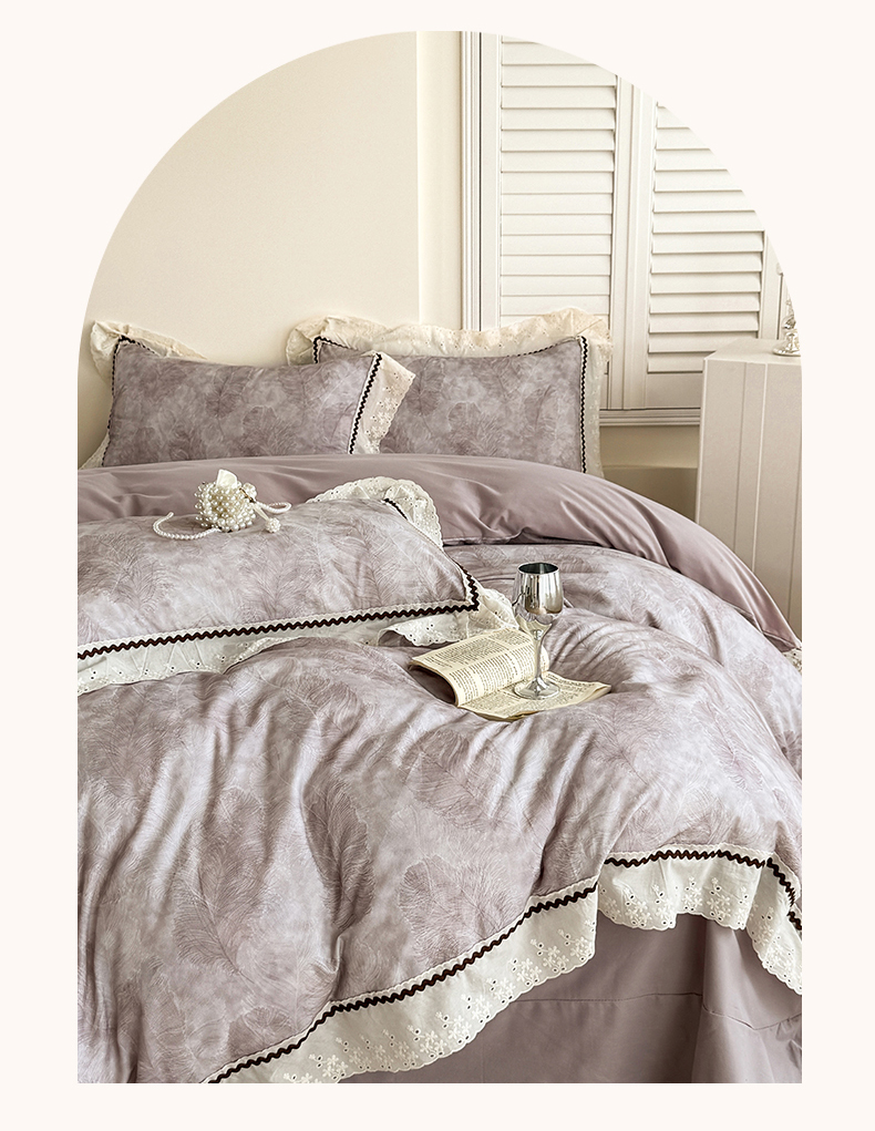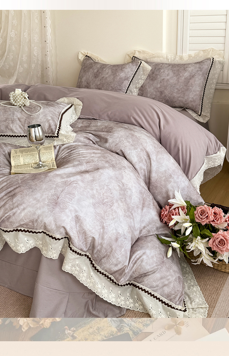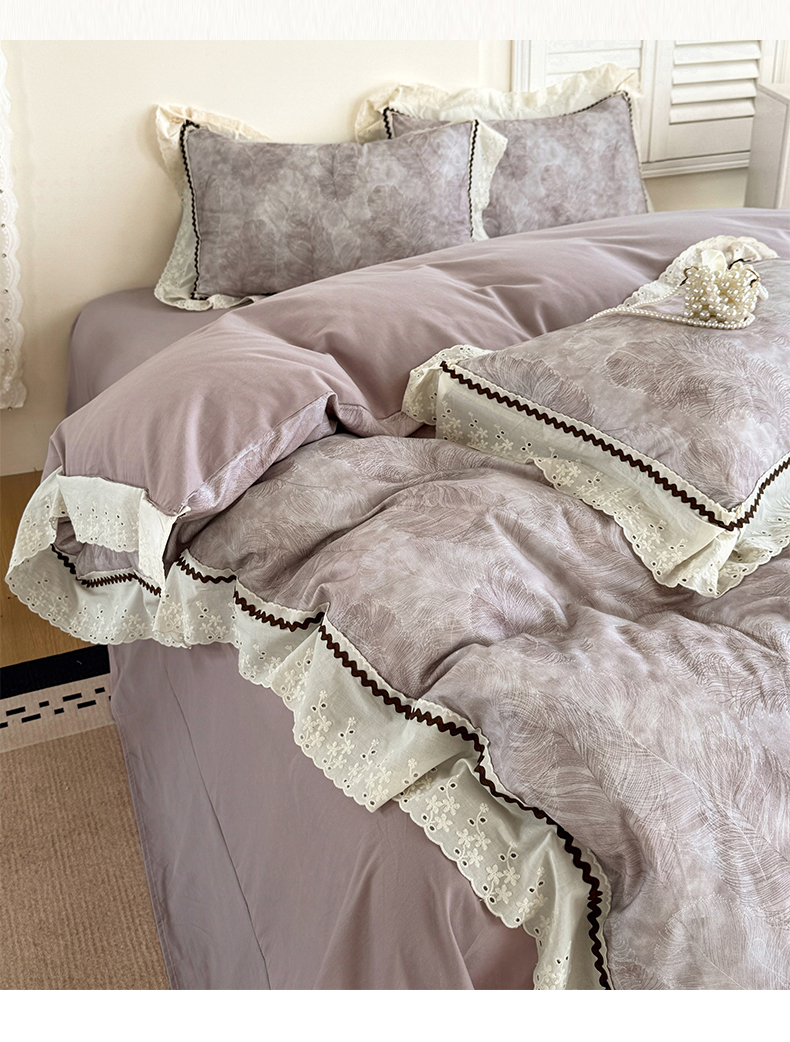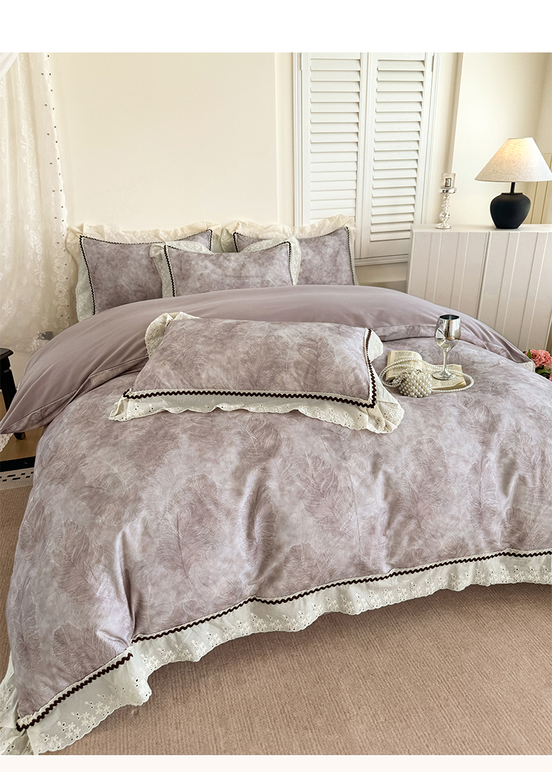 商品名称:星座家纺 2025新款秋冬全棉花边数码印花磨毛四件套 羽絮-紫