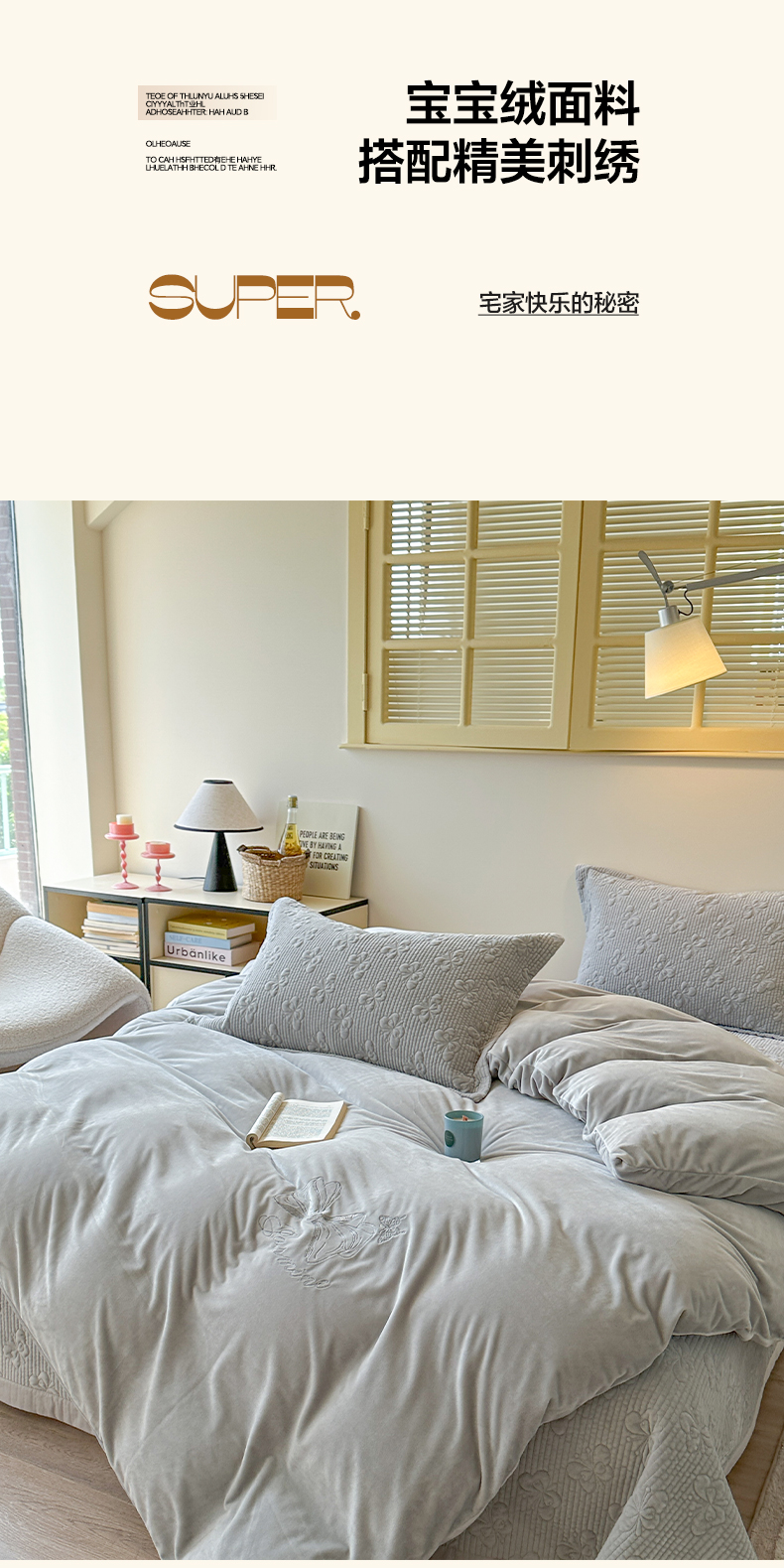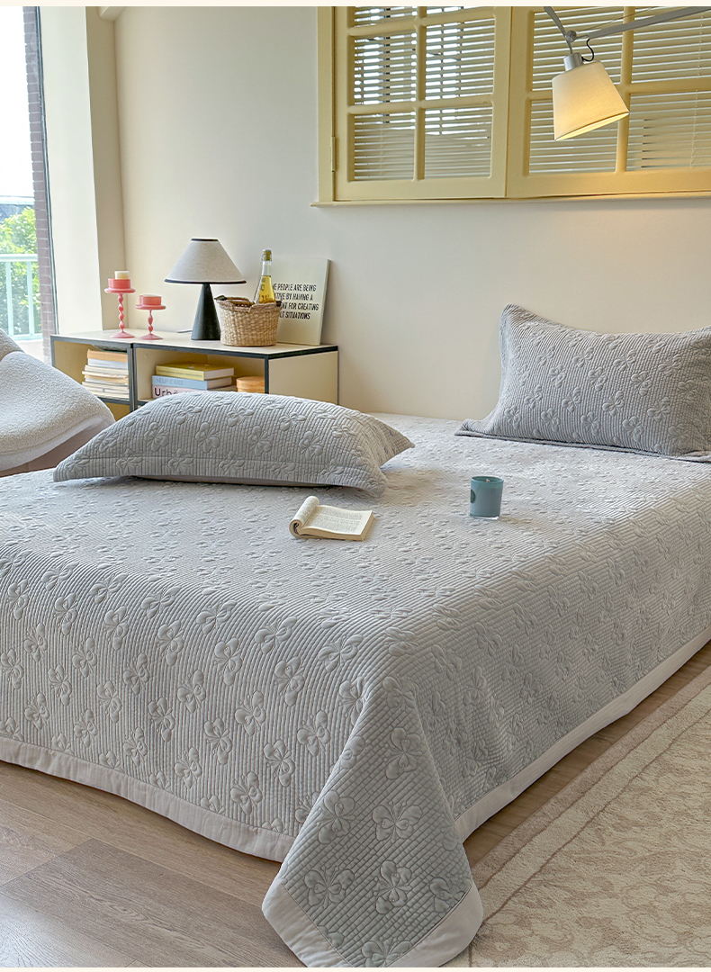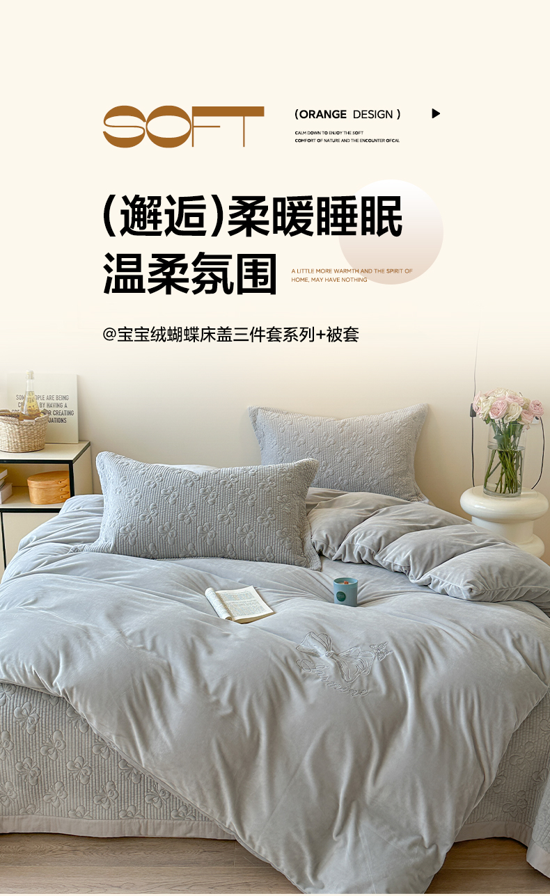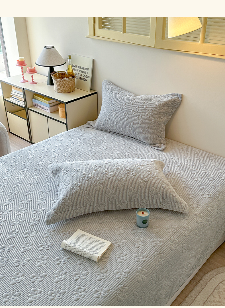 琳可家居 2025新款蝴蝶系列棉加绒床盖 绒蝴蝶-灰雅