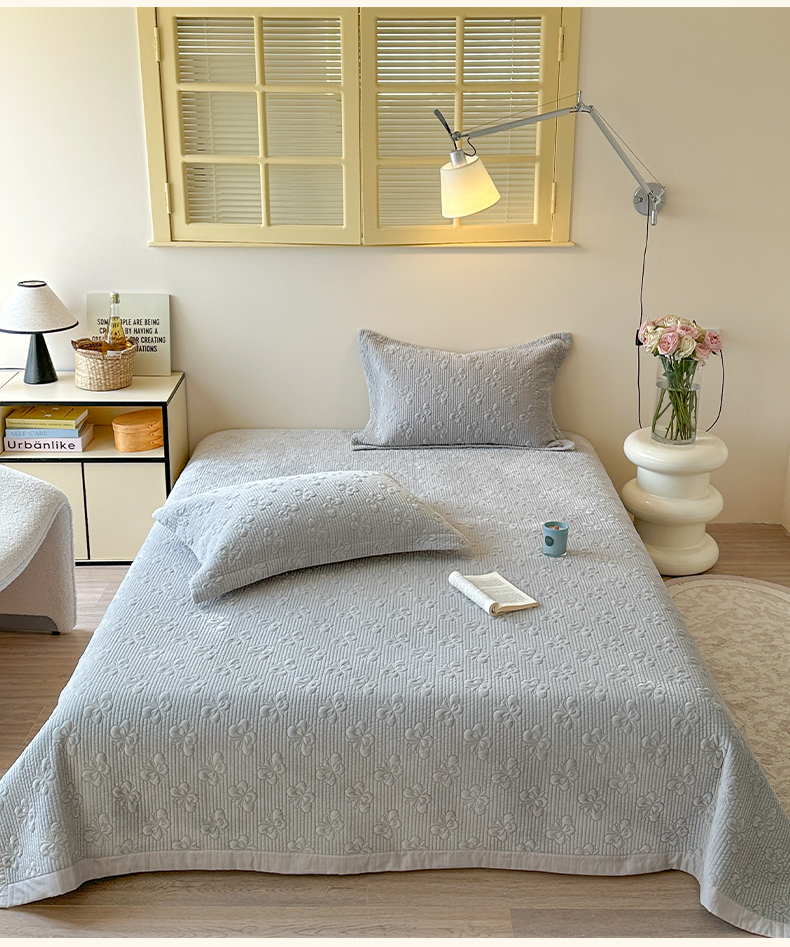 2022新款40S纯棉水洗棉韩版全棉荷叶边夹棉绗缝床盖三件套,海盐蓝,静谧灰,抹茶绿,奶油黄,千黛紫,浅豆沙,悠悠粉,云朵白,马卡桔,青草绿