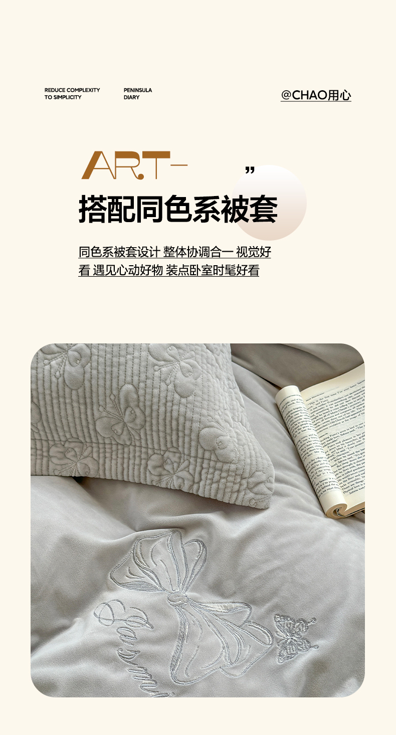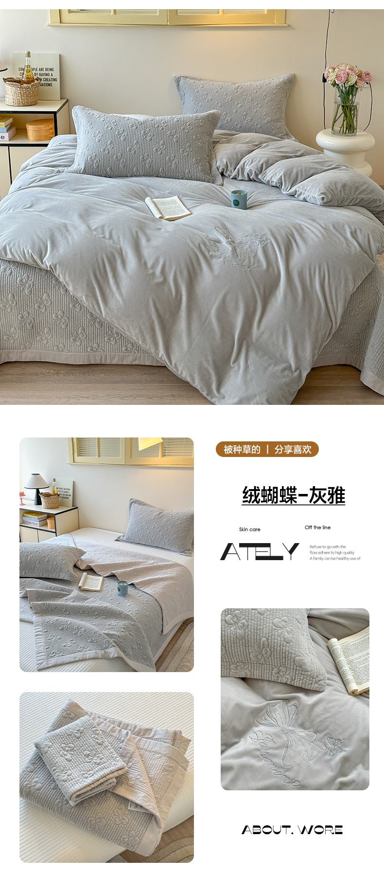 商品名称:琳可家居 2025新款蝴蝶系列棉加绒床盖 绒蝴蝶-灰雅