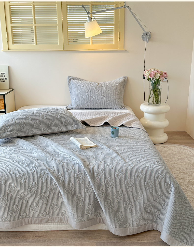 (总)琳可家居 2026春夏新品双面斜纹全棉印花绣花床盖可机洗加密绗缝高温水洗,格子樱桃粉,格子樱桃蓝,条纹狗狗,条纹樱桃,组合