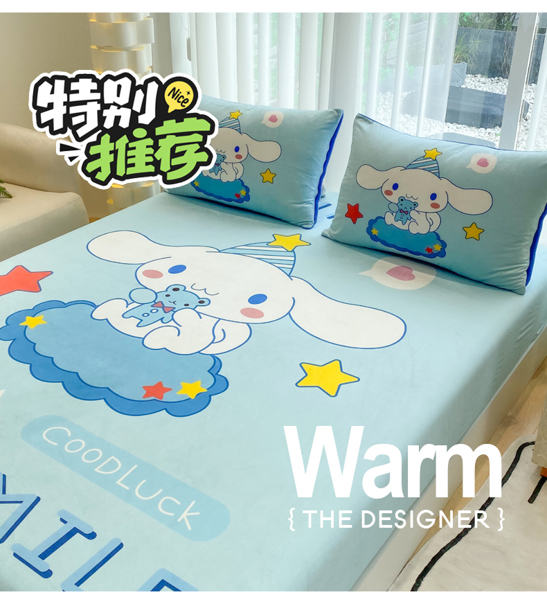 (总)一电 2025新款冬季双面牛奶珊瑚绒床上四件套法兰绒床品加绒被套床单三件套-第三批,公主库洛米,天使库洛米,甜筒库洛米,小兔子,圆点库洛米