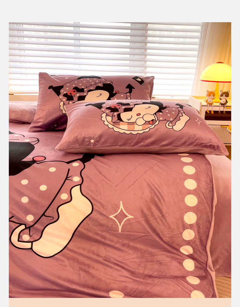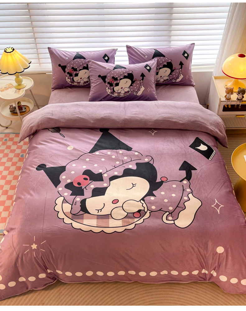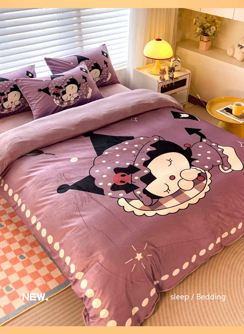 (总)一电 2025新款冬季双面牛奶珊瑚绒床上四件套法兰绒床品加绒被套床单三件套-第三批,公主库洛米,天使库洛米,甜筒库洛米,小兔子,圆点库洛米