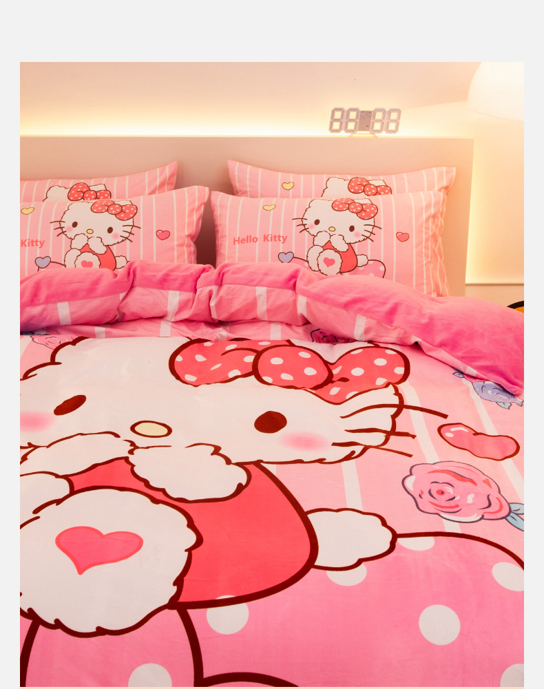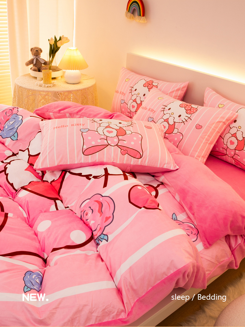 一电 2025外贸跨境电商儿童卡通床上四件套亲肤牛奶绒学生三件床单被套加大珊瑚宝宝卡通单被套 害羞KT