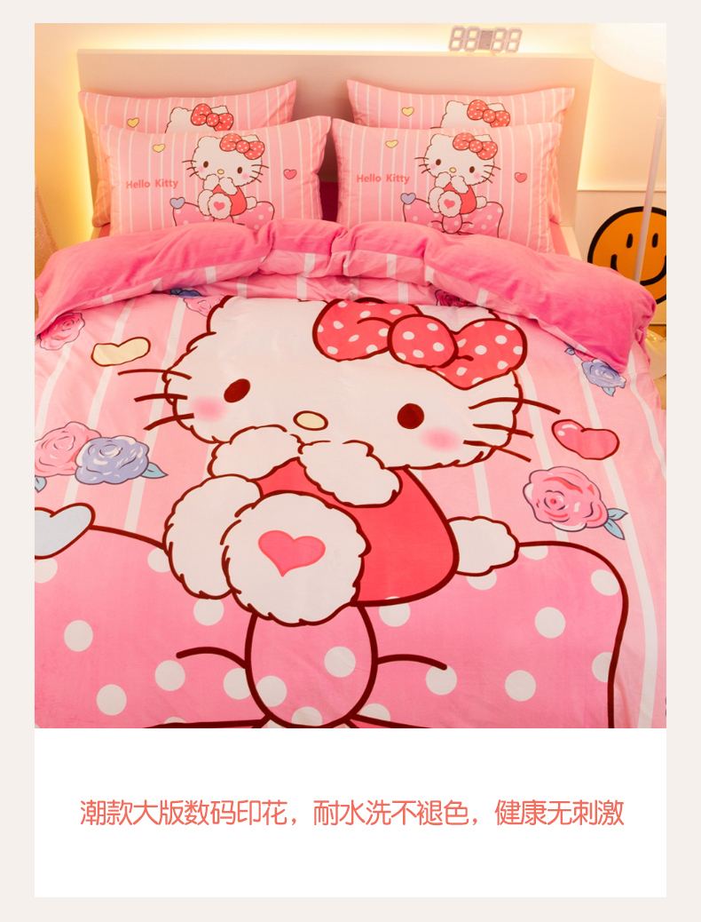 商品名称:一电 2025外贸跨境电商儿童卡通床上四件套亲肤牛奶绒学生三件床单被套加大珊瑚宝宝卡通单被套 害羞KT