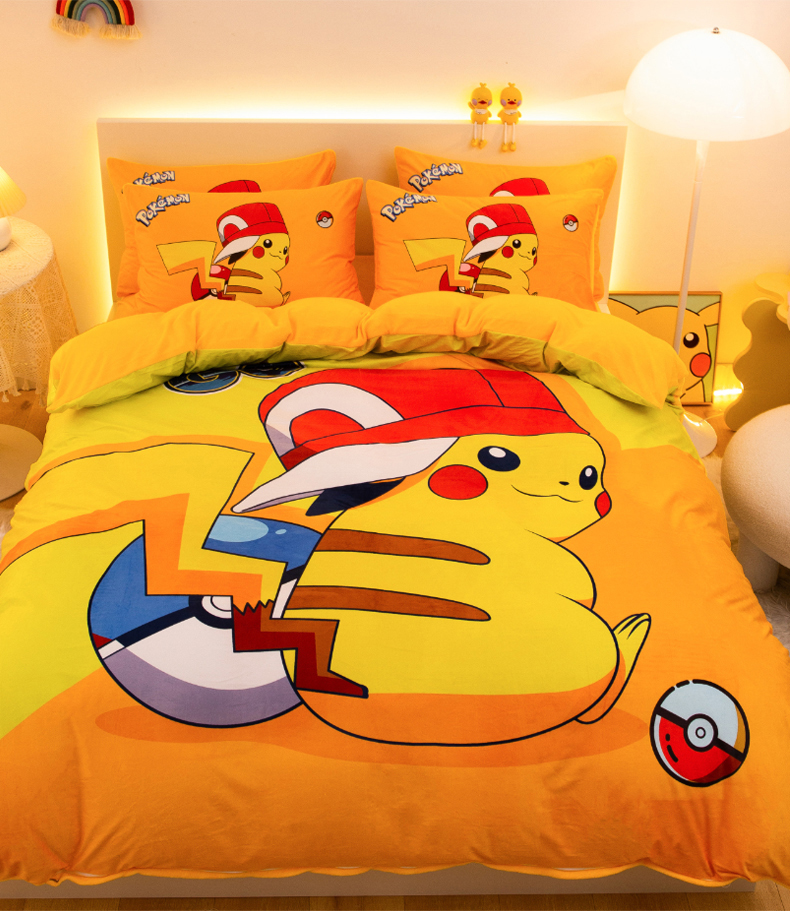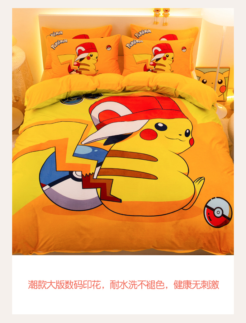 商品名称:一电 2025外贸跨境电商儿童卡通床上四件套亲肤牛奶绒学生三件床单被套加大珊瑚宝宝卡通单被套 小红帽皮卡丘