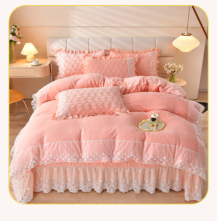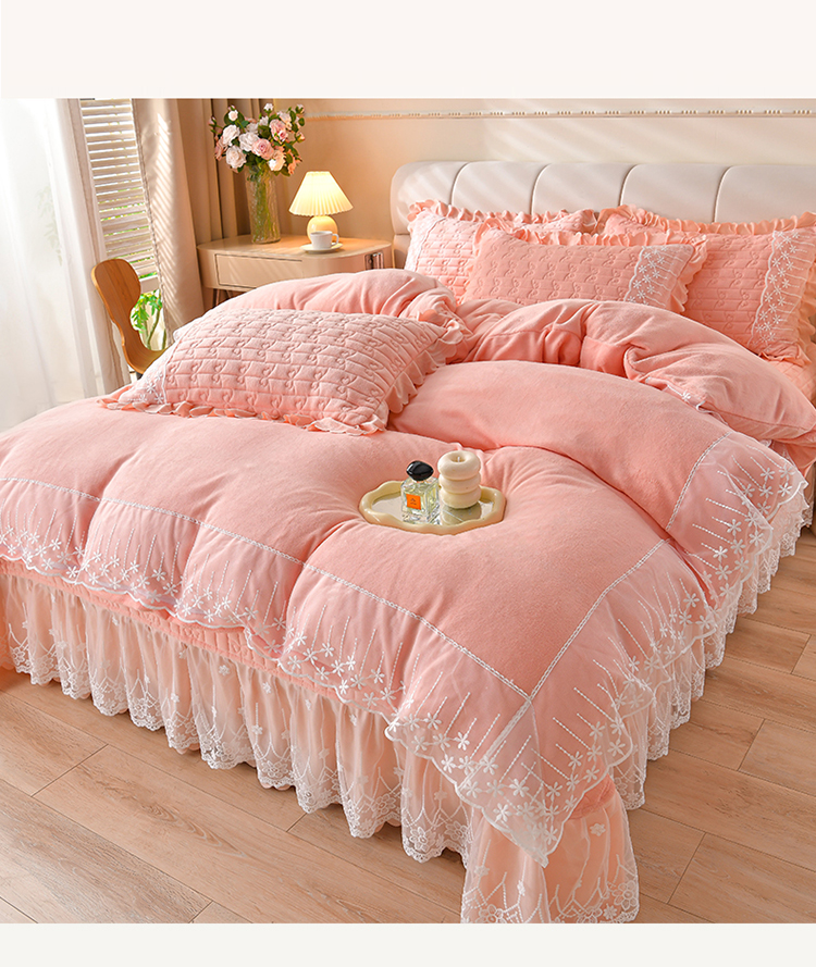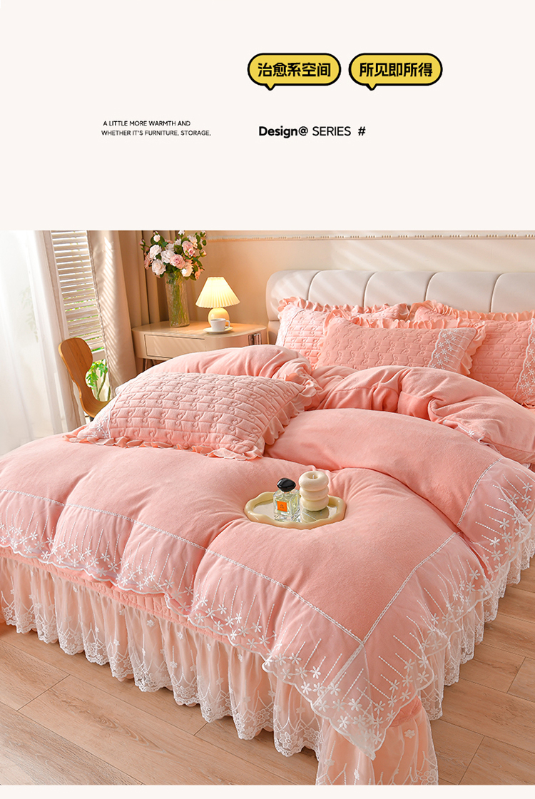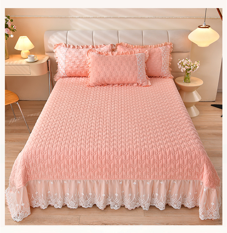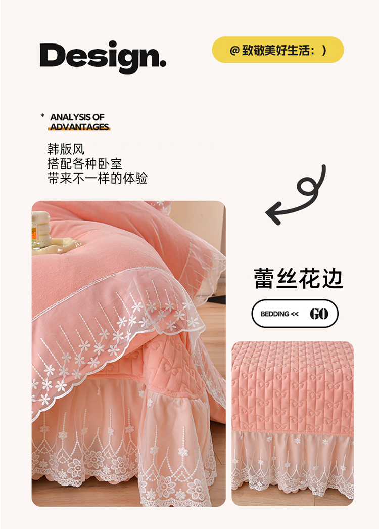 (总)三友家纺 直播爆款纯色韩版牛奶绒蕾丝花边床盖床裙单件三件套四件套,花颂-粉色,花颂-卡其,花颂-墨绿,花颂-浅紫,花颂-深灰,花颂-深蓝,花颂-天蓝