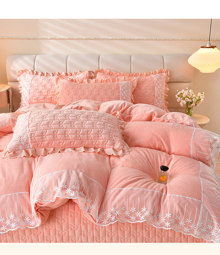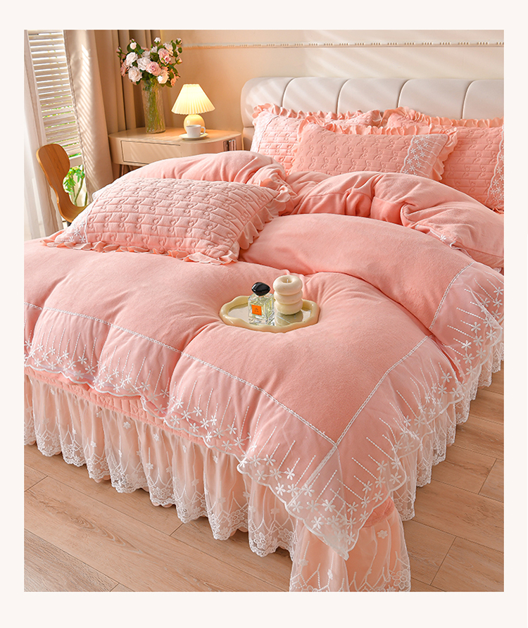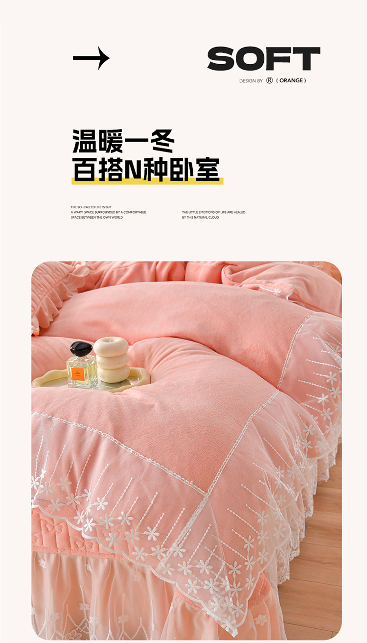 (总)三友家纺 直播爆款重工蕾丝牛奶绒花边床盖三/四件套