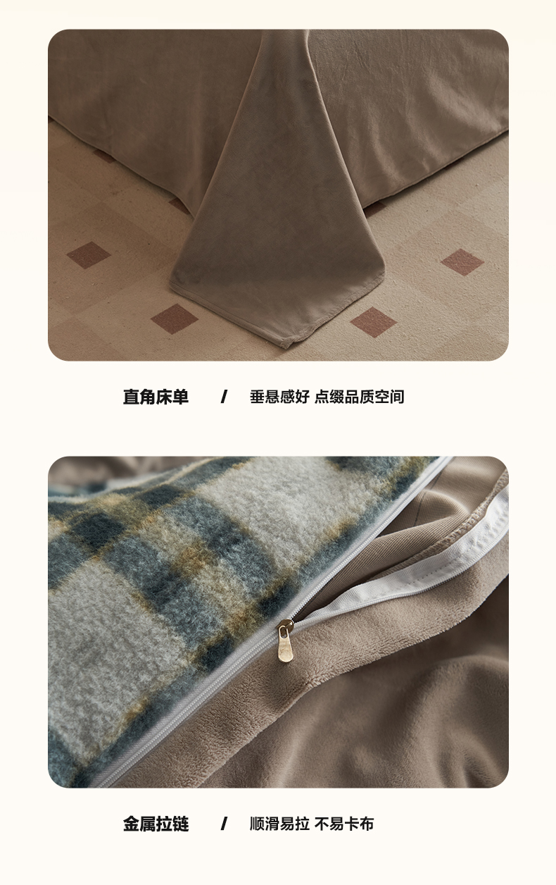 当前位置: 91家纺网 > 商品网购 > 床品套件 > 四件套 > 牛奶绒四件套 > 寐绸家纺 2025秋冬新款230g羊驼绒复古格牛奶绒四件套 威尔士亲格