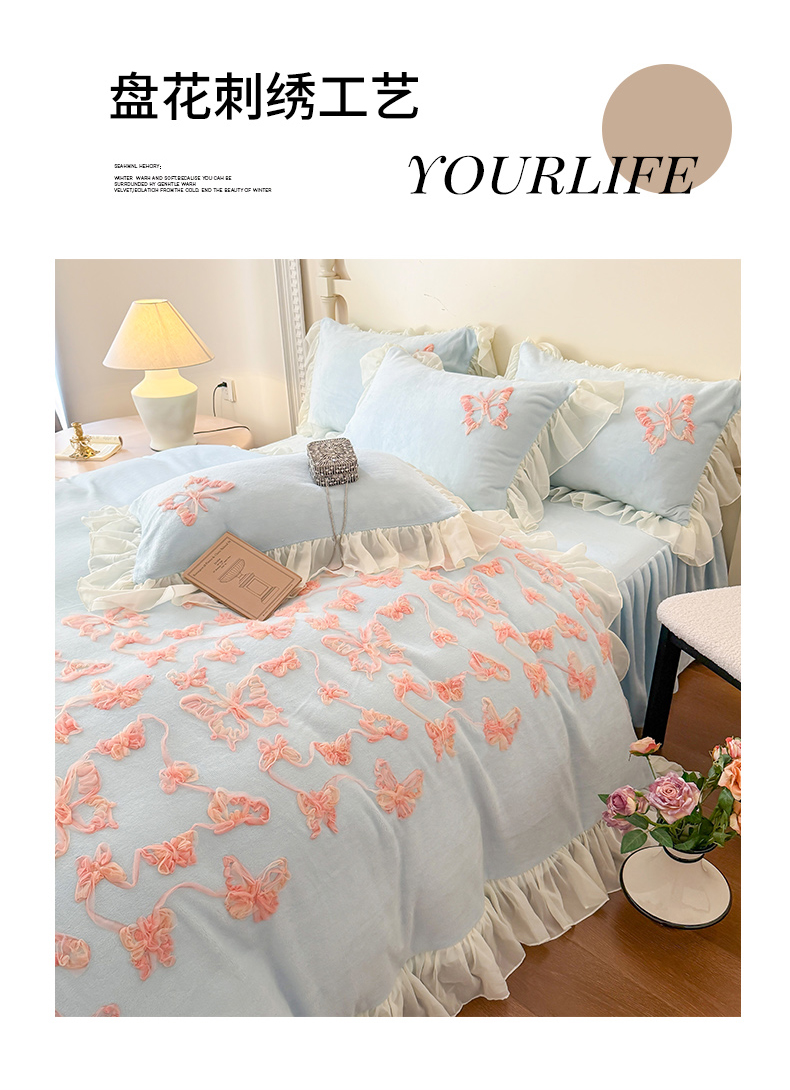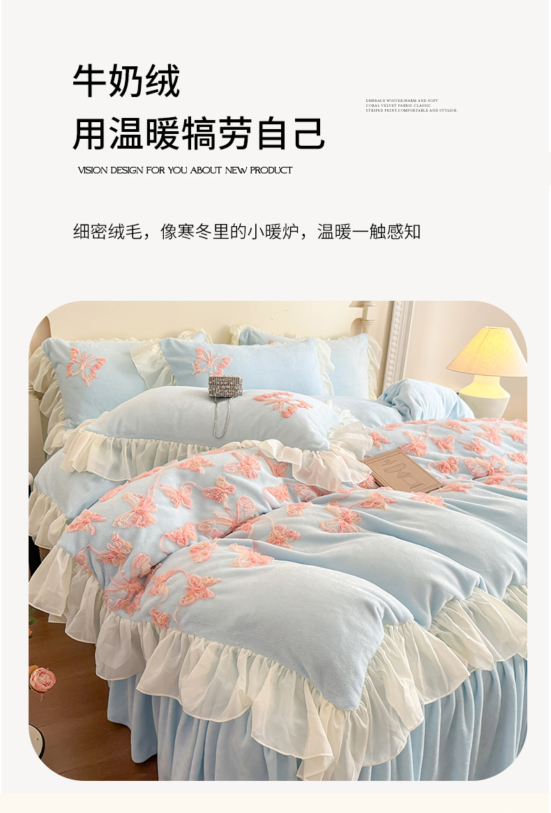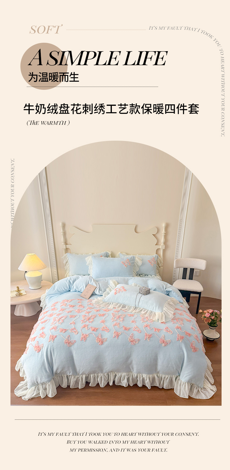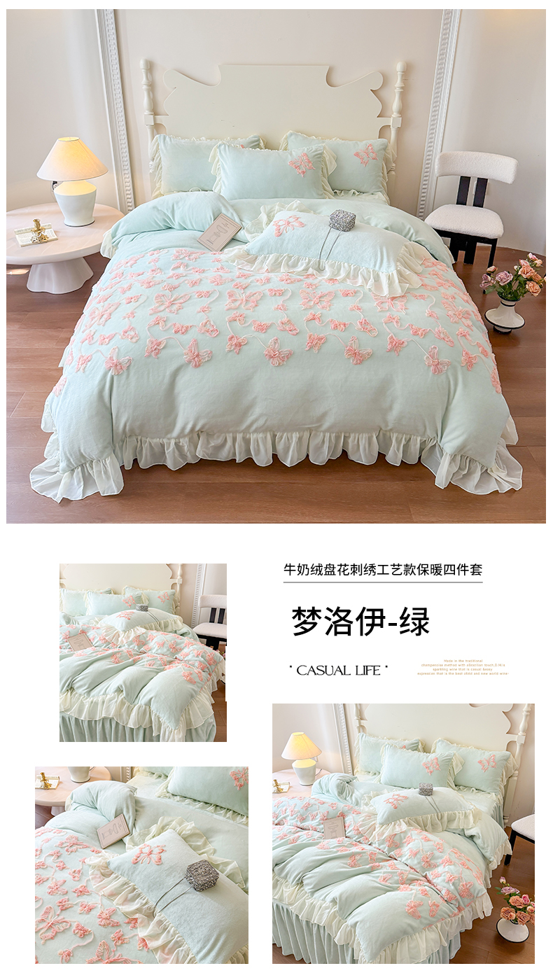 当前位置: 91家纺网 > 商品网购 > 床品套件 > 四件套 > 牛奶绒四件套 > 富盛家纺 2025新款牛奶绒床裙款盘花刺绣四件套韩版法式公主风--梦洛伊系列 梦洛伊-蓝