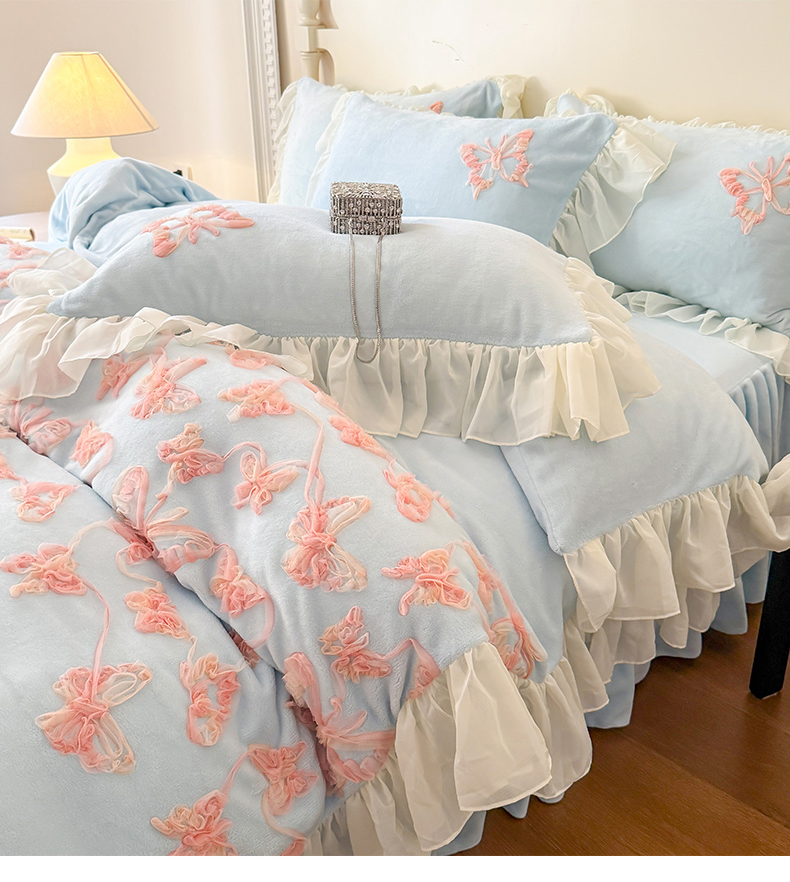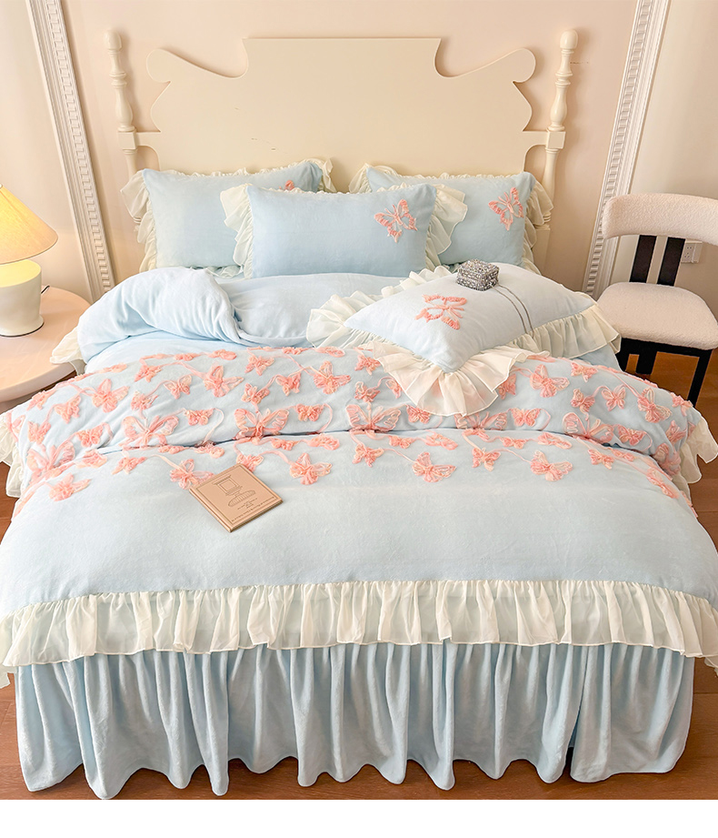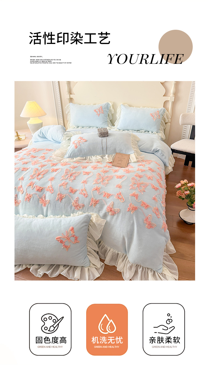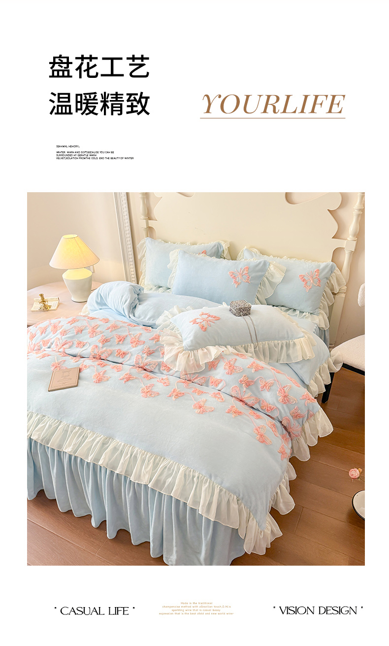 当前位置: 91家纺网 > 商品网购 > 床品套件 > 四件套 > 牛奶绒四件套 > 富盛家纺 2025新款牛奶绒床裙款盘花刺绣四件套韩版法式公主风--梦洛伊系列 梦洛伊-蓝