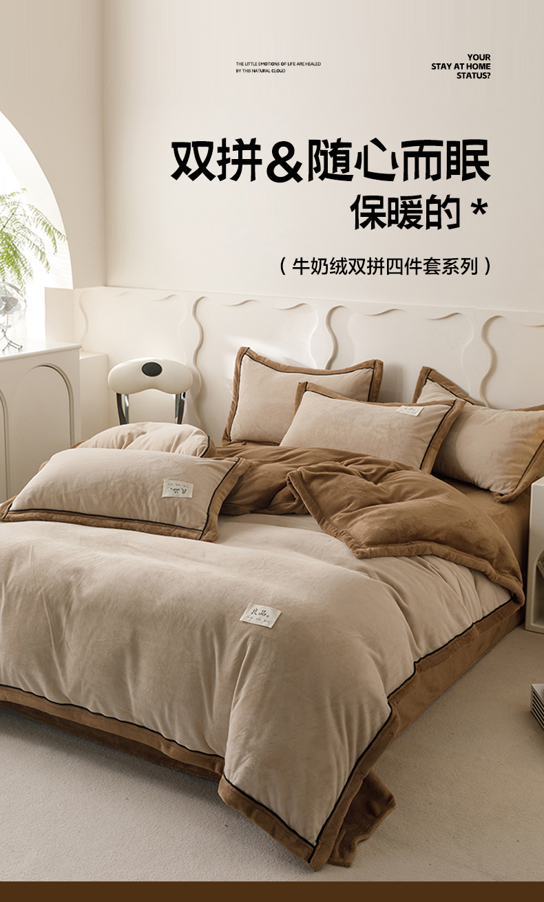 当前位置: 91家纺网 > 商品网购 > 床品套件 > 四件套 > 牛奶绒四件套 > 寐绸家纺 2025秋冬新款230g牛奶绒双拼四件套 双拼四件套-米白+浅水绿
