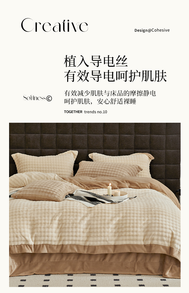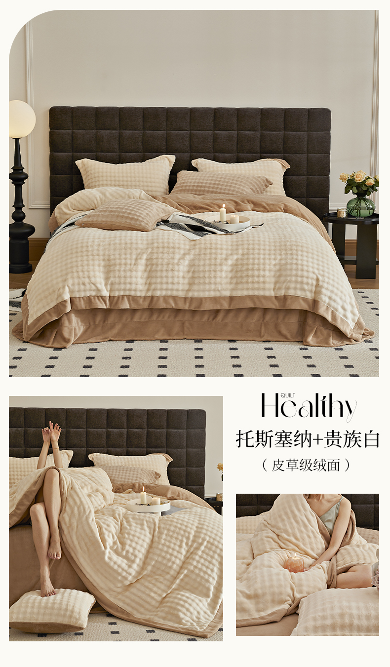 商品名称:新月家纺(锦威郎) 2025新款加厚皮草兔毛绒牛奶绒系列四件套9.2斤 托斯塞纳+贵族白