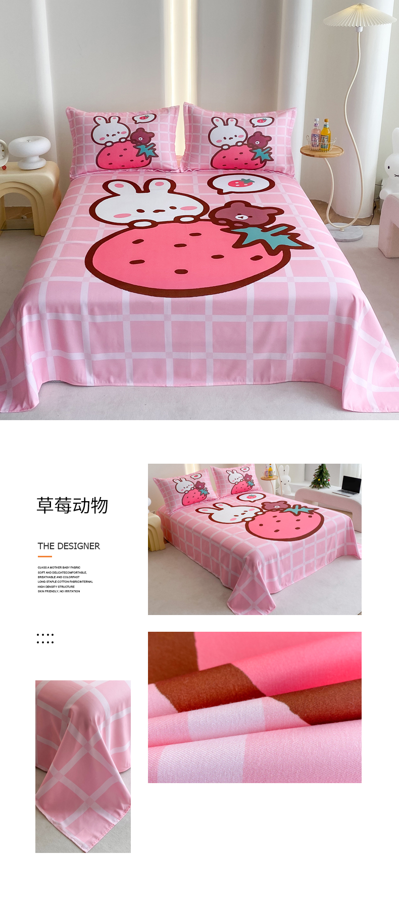 • 91家纺网 家纺一手货源 找家纺 一电 2025新款卡通床单单件被单学生宿舍被罩三件套单人儿童上下床床单-第二批 贝贝熊