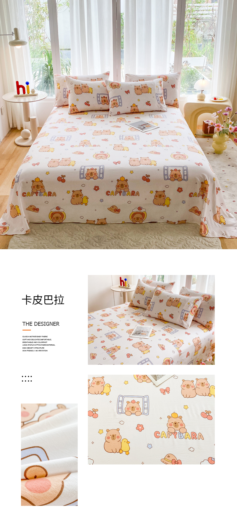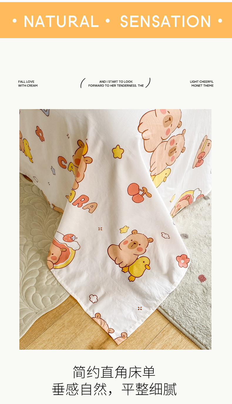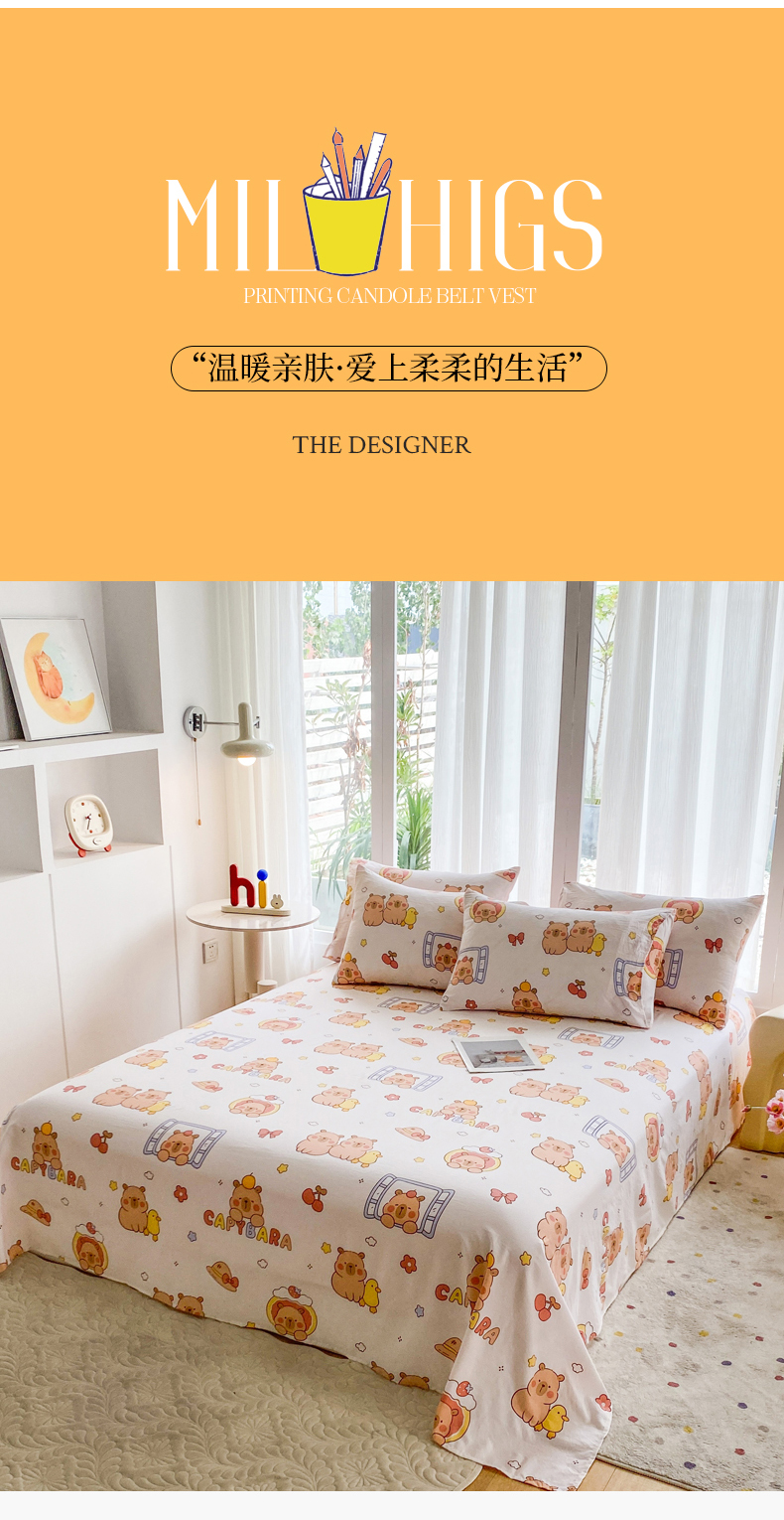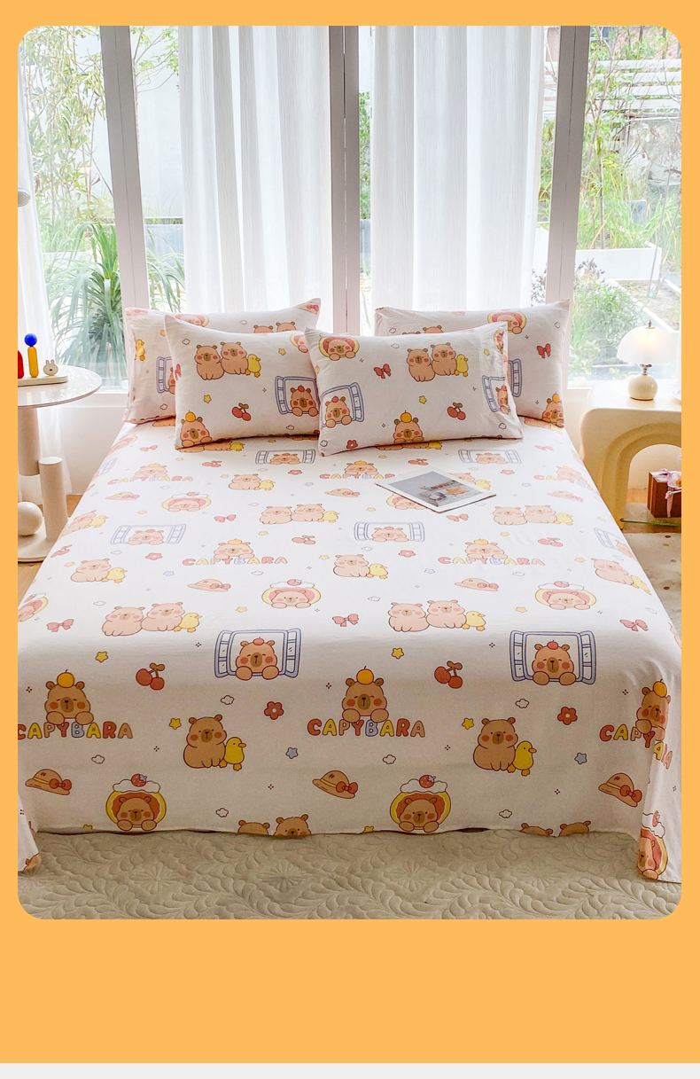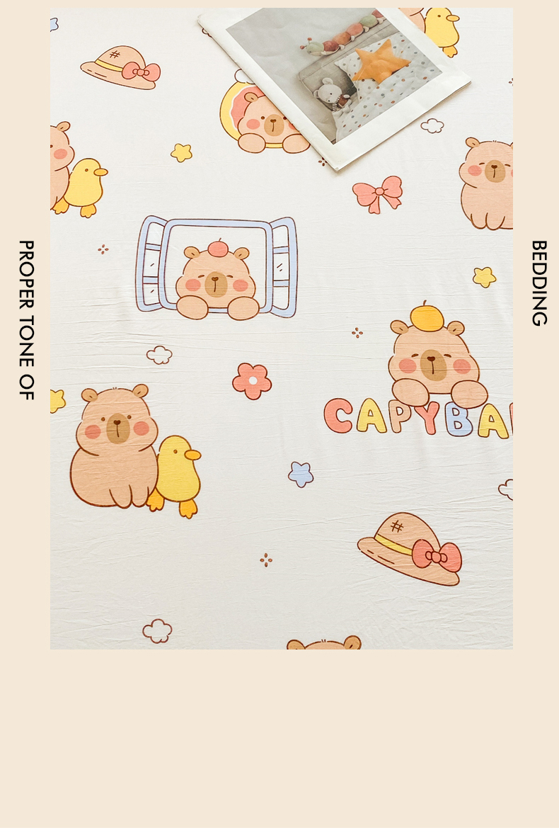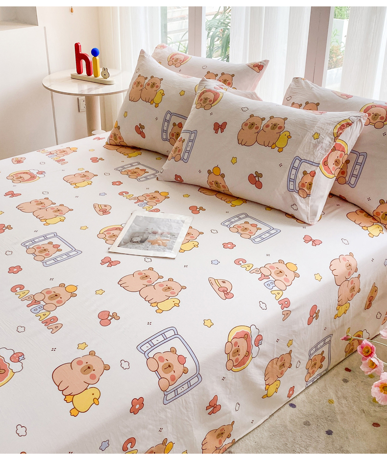 • 91家纺网 家纺一手货源 找家纺 一电 2025新款卡通床单单件被单学生宿舍被罩三件套单人儿童上下床床单-第五批 卡皮巴拉